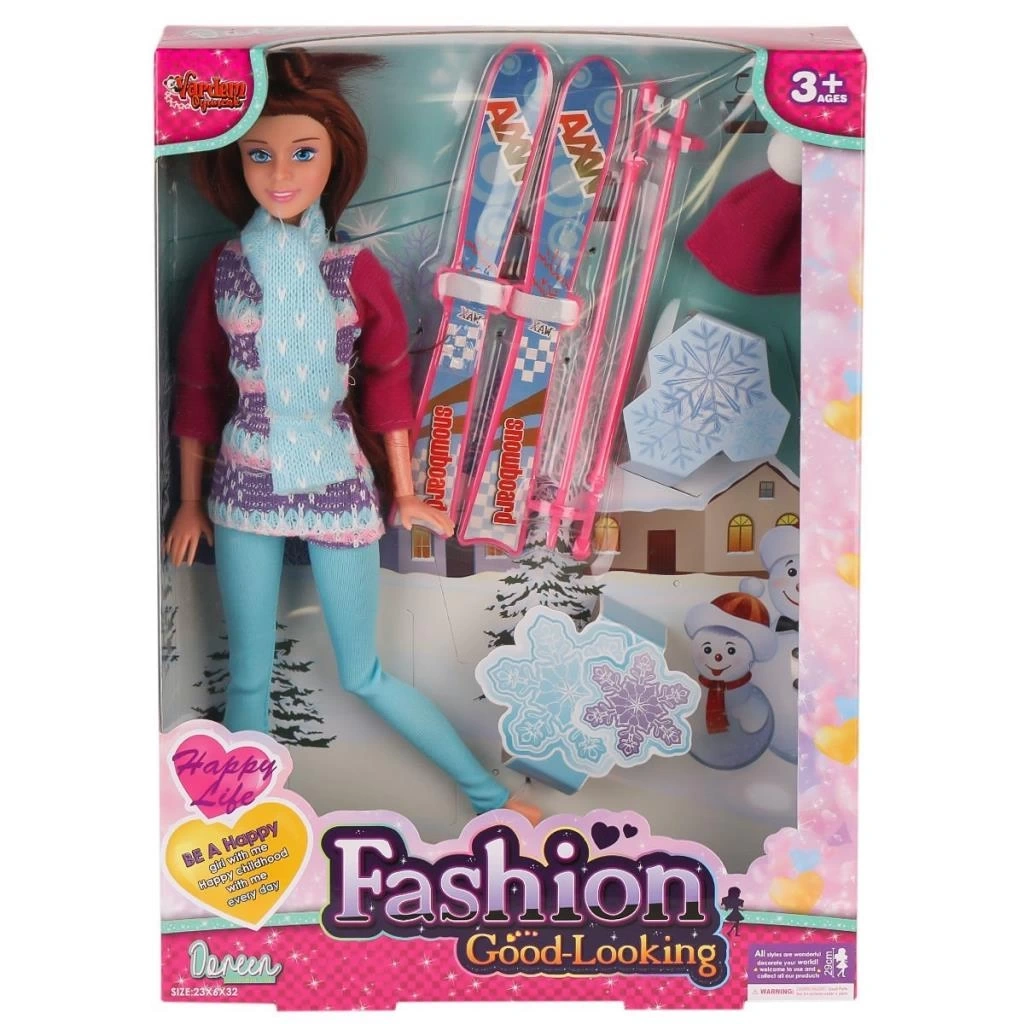 Çocukların oyunlarını keyifli hale getirecek kutulu 29 cm Aksesuarlı Kayakçı bebek seti.