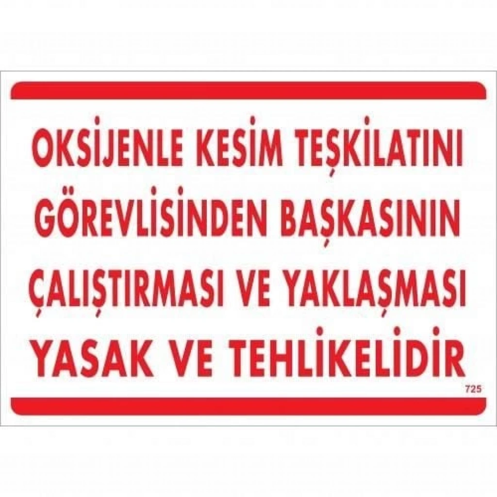 Oksijenle Kesim Teskilatını Görevlisinden Başkasının Çalıştırması ve Yak Uyarı Levhası 25x35 KOD:725