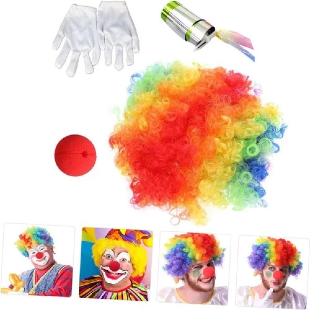 Palyaço Saç Palyaço Burun Palyaço Eldiven Palyaço Sihirli Baston 4 Lü Seti