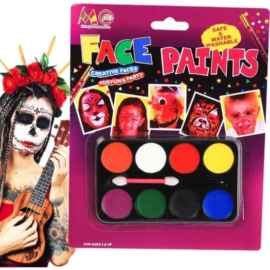 Palyaço Yüz Boyama Seti Fırçalı Makyaj Boyama Seti 8 Renk