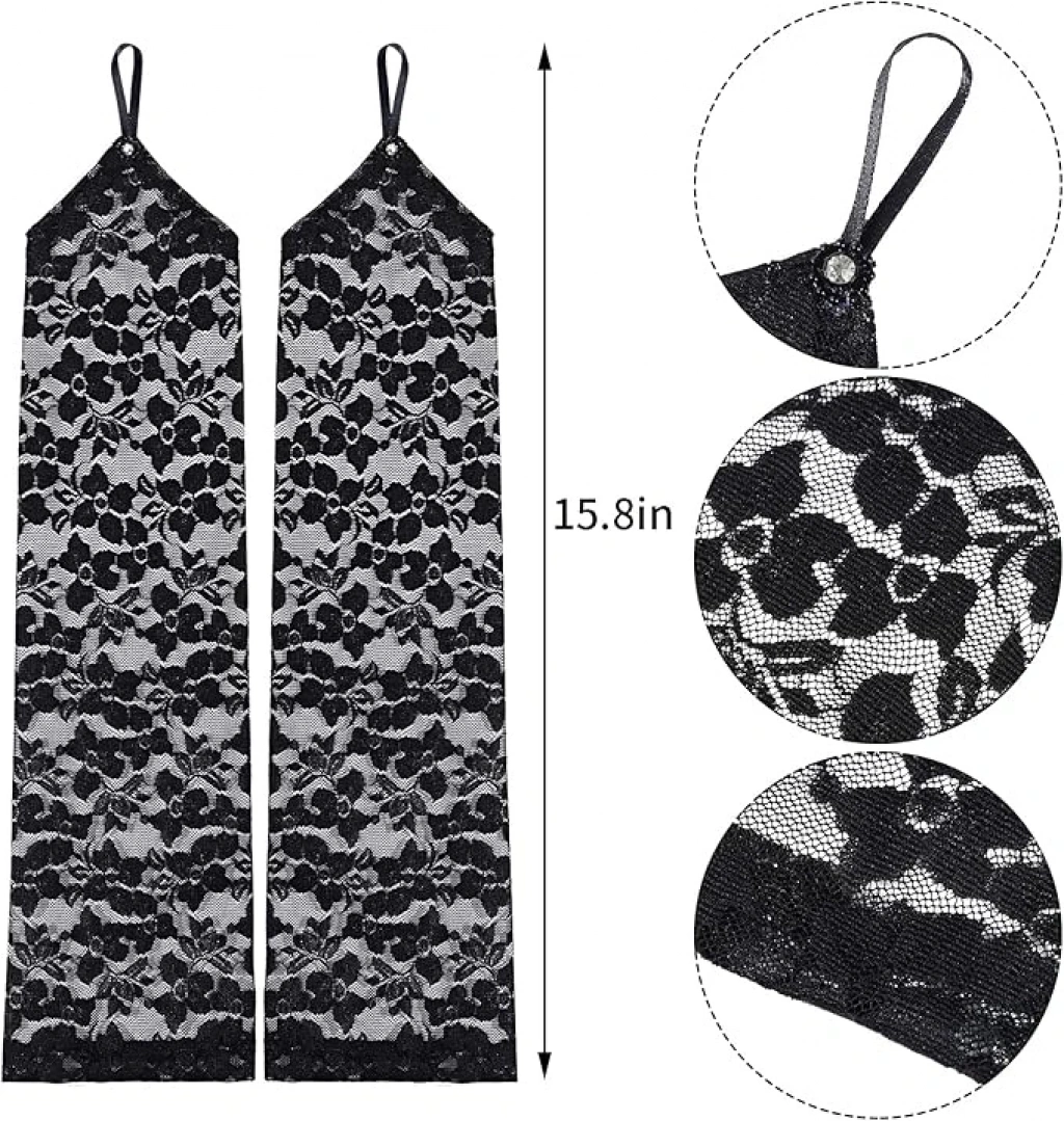 Timion Parmak Askılı Zarif Gece Şıklığı Dantel Eldiven 40 cm