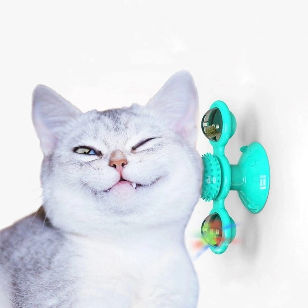 Kediler bu vantuzlu dönen kedi oyuncağı ile kendi kendine eğlenebilir.