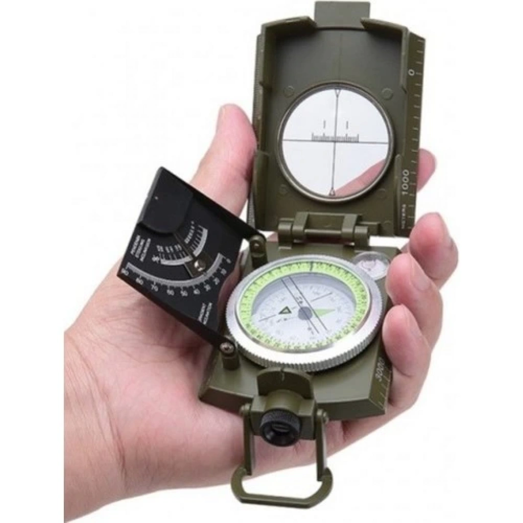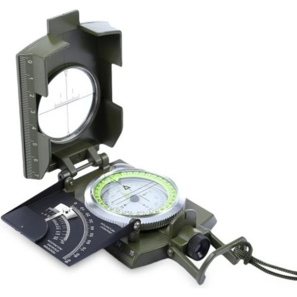 Prizmatik Suya Dayanıklı Işıltılı Pusula ile Kılıfı Askeri Ordu Kamp Yürüyüş Seyahat Için Jeoloji Pusula