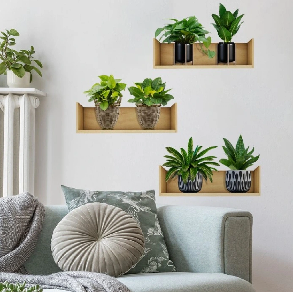 Raflı Bitki Tasarımlı Yapışkanlı Sticker 20*30 cm 3lü Set MC-663