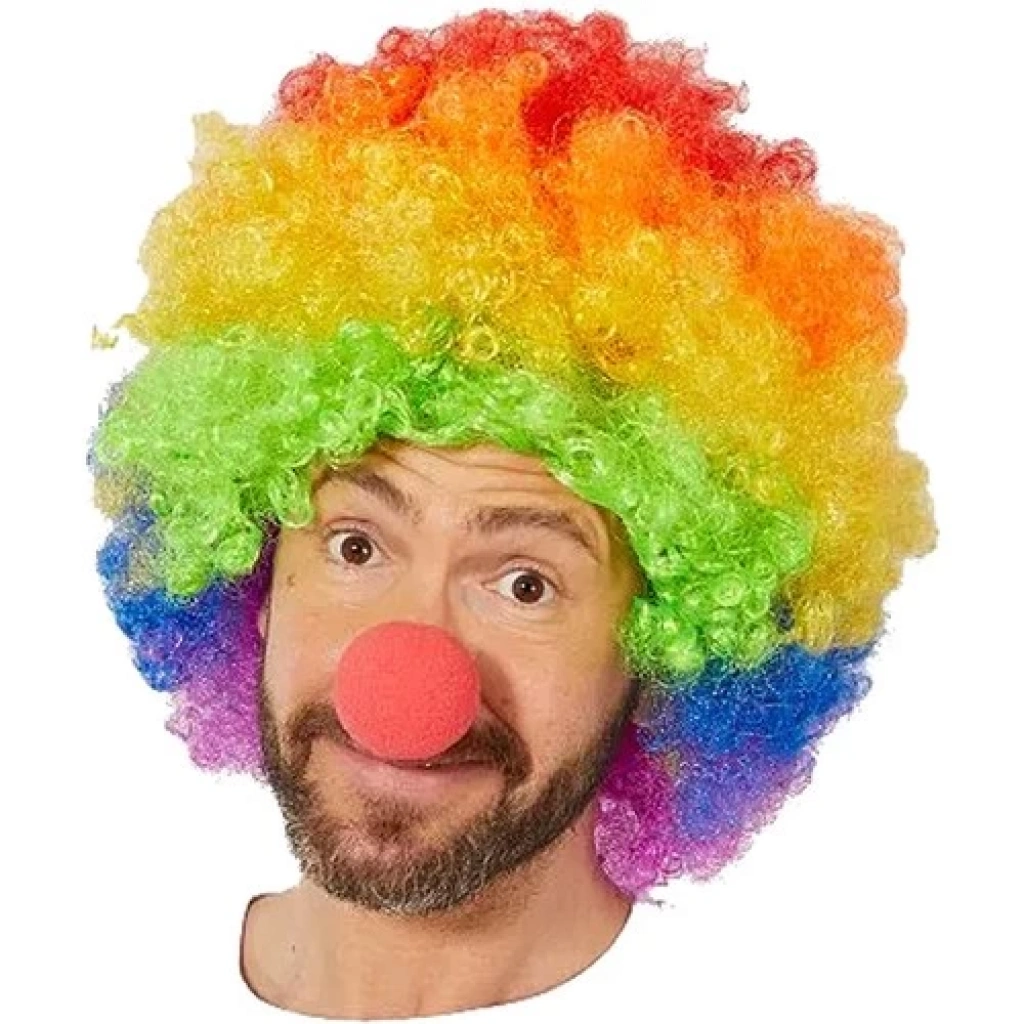Rengarenk Gökkuşağı Afro Bonus Peruk ve Kırmızı Renk Sünger Burun 120 gr