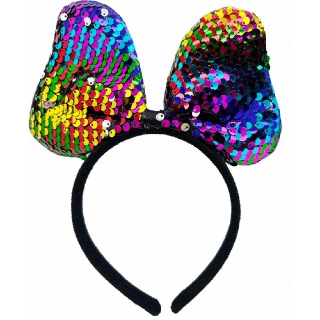 Renk Değiştiren Pullu Payetli Fiyonk Parti Tacı Rengarenk Gümüş Renk 20X16 cm