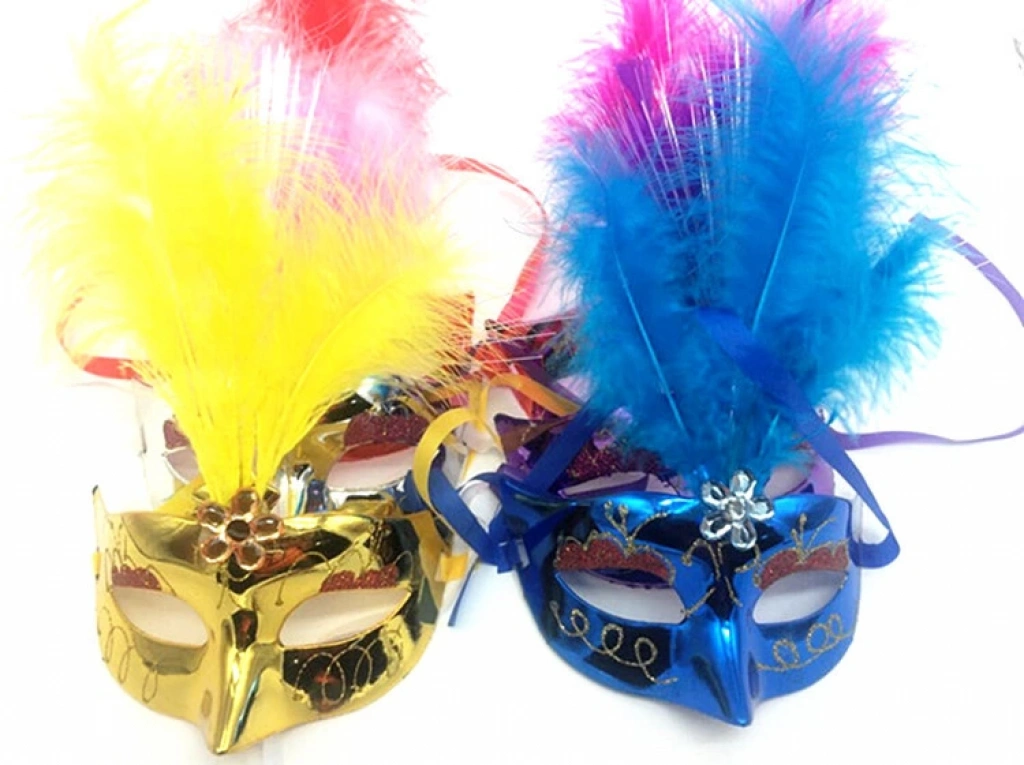 Renkli Tüylü Venedik Parti Maskesi Karışık Renk 12 Adet (5148)