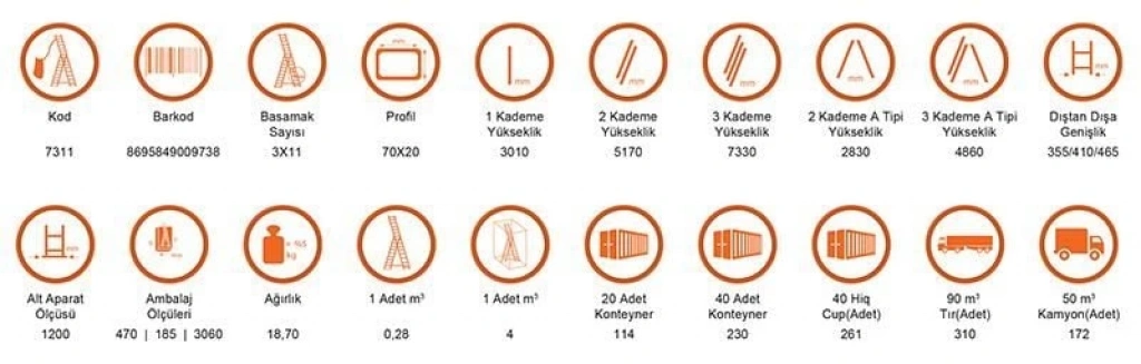 Saraylı 3x11 A Tipi Sürgülü Merdiven 9,03 Metre