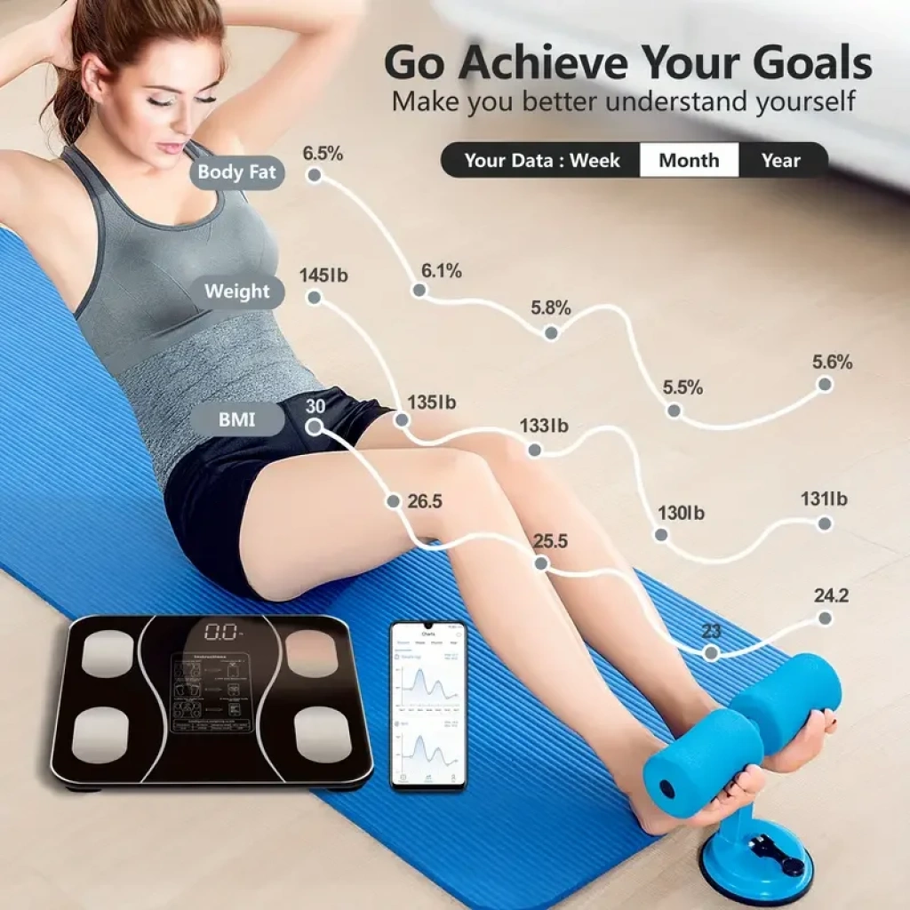 Kablosuz Vücut Tartısı, Yüksek Hassasiyetli Banyo Terazisi, Uygulama Bağlantılı LCD Ekran, kg/lbs/t Birim Değiştirme - Ev/Spor Salonu/Banyo İçin (Pil Dahil Değildir)