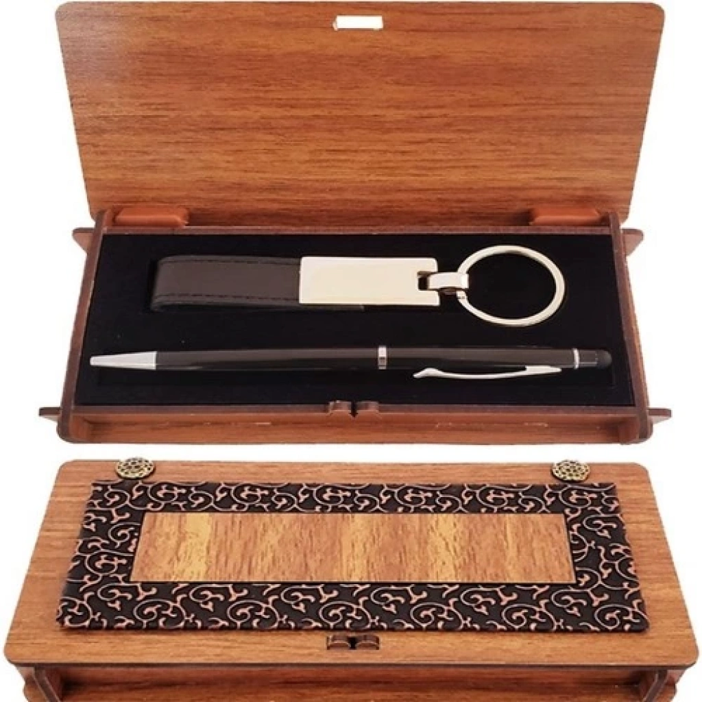 Siyah Kalem ve Anahtarlık Ahşap Kutulu Set