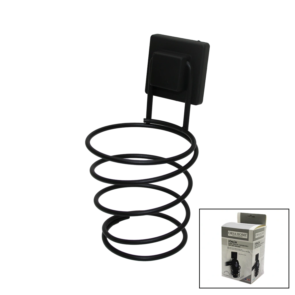 Siyah - Metal Fönlük Fön Makine Askısı Kare Macun Yapışkanlı10x11x15cm (5148)
