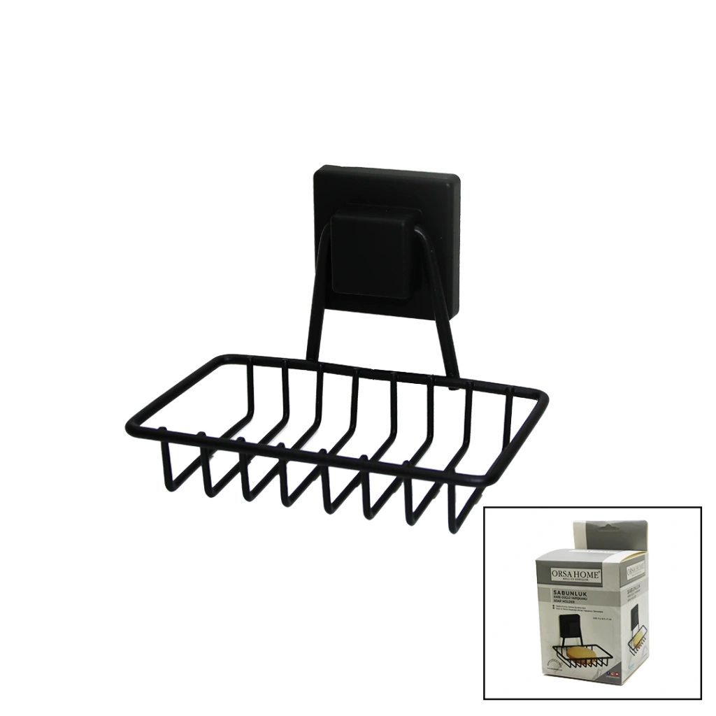 SİYAH - METAL KATI SABUNLUK KARE GÜÇLÜ YAPIŞKANLI 11X12.5X11CM