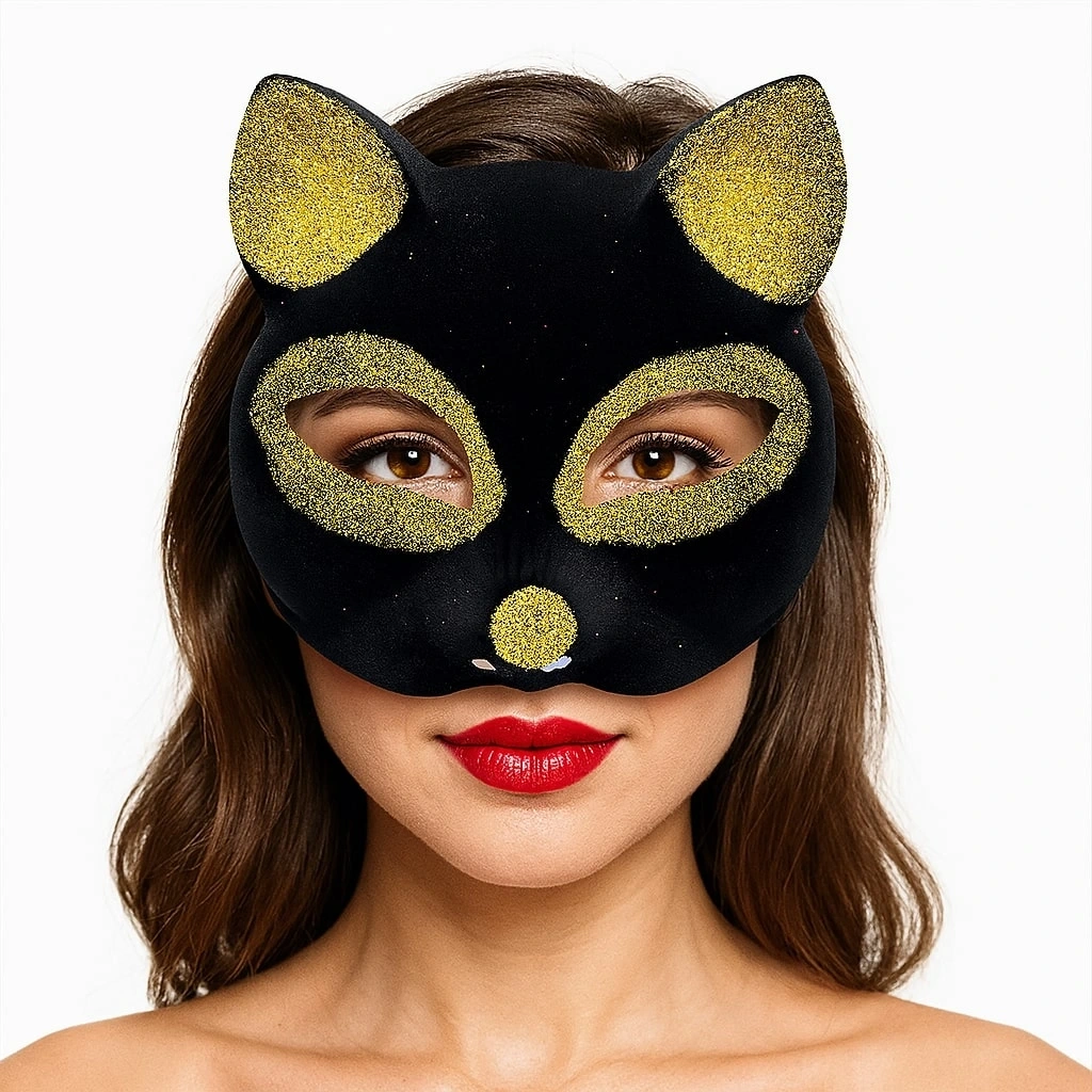 Timion Siyah Renk Gold Simli Süet Kaplama Kedi Maskesi 18x14 cm