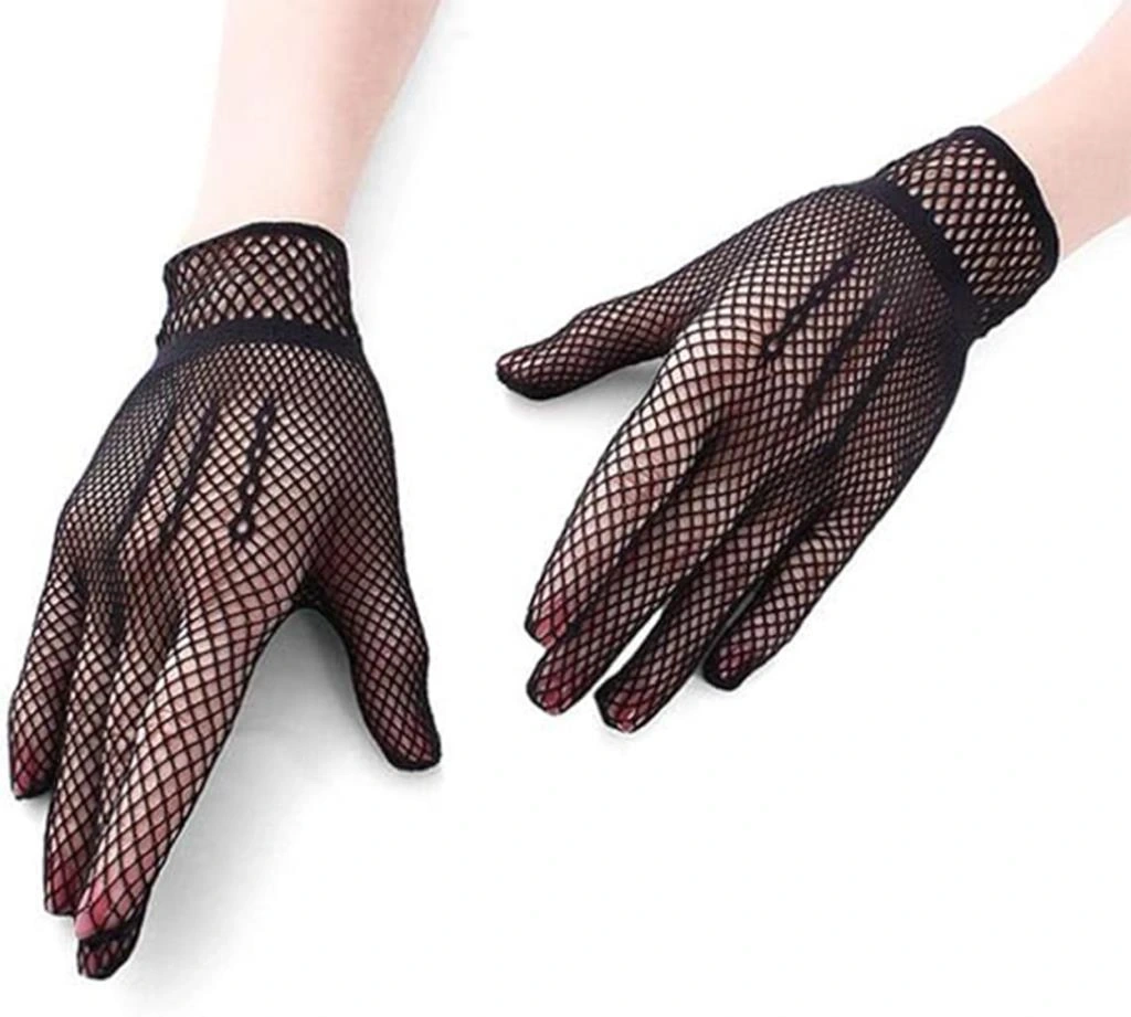 Siyah Renk Likralı File Eldiven Parmaklı Örgü Eldiven Yetişkin Boy