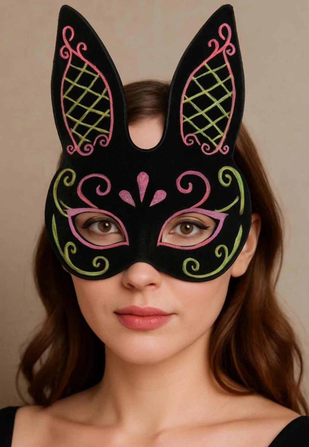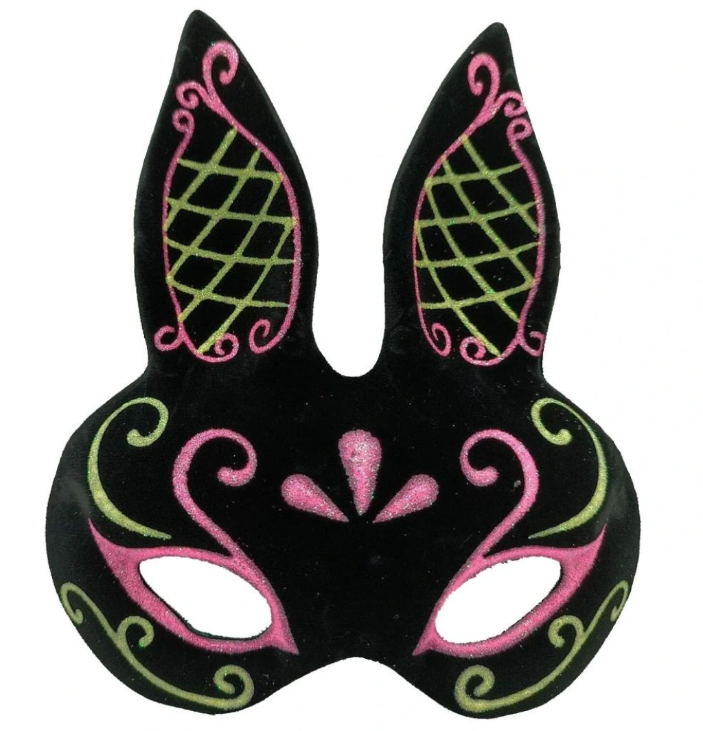 Timion Siyah Renk Pembe Gold Simli Siyah Süet Kaplama Tavşan Maskesi 18x16 cm