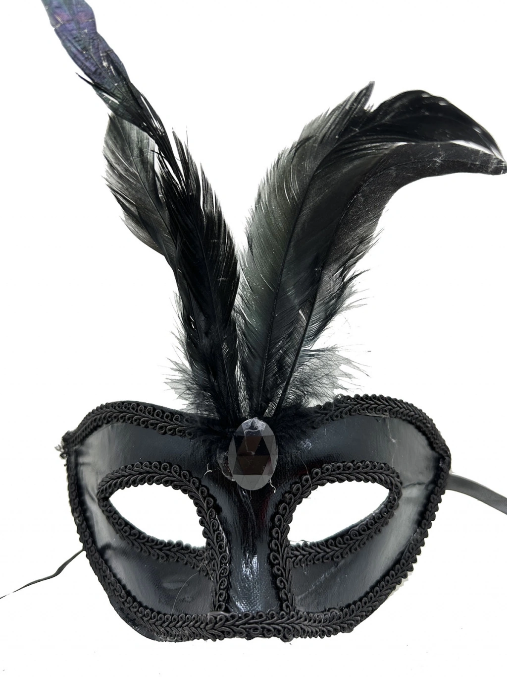 Siyah Rugan Kaplama Siyah Tüylü Parti Maskesi ile Şık ve Göz Alıcı Bir Görünüm Oluşturun!