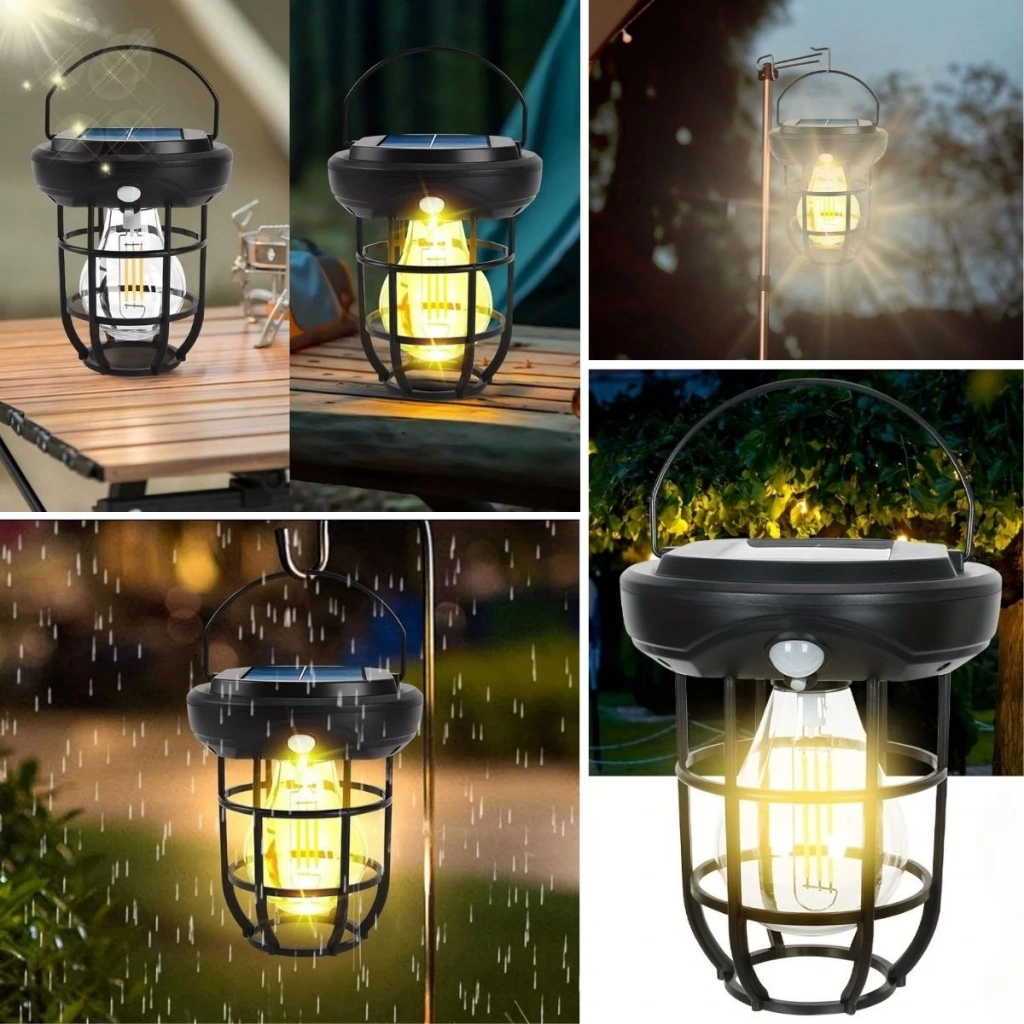 Solar Kamp Feneri – Güneş Enerjili, Otomatik Şarj ve Gece Işığı, Taşınabilir ve Asılabilir LED Dış Mekan Lamba