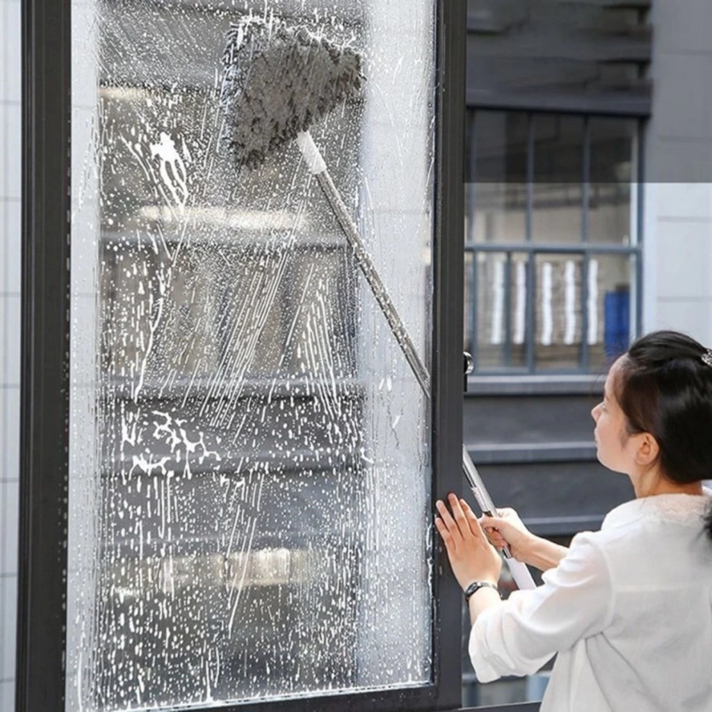 Özel mikrofiber bezi ve çekpası sayesinde cam temizliği yapmak artık çok kolay Üçgen başlık tasarımı 360 derece hareket edebilir, tüm köşeleri el değmeden temizleyebilir, kurulayabilirsiniz.