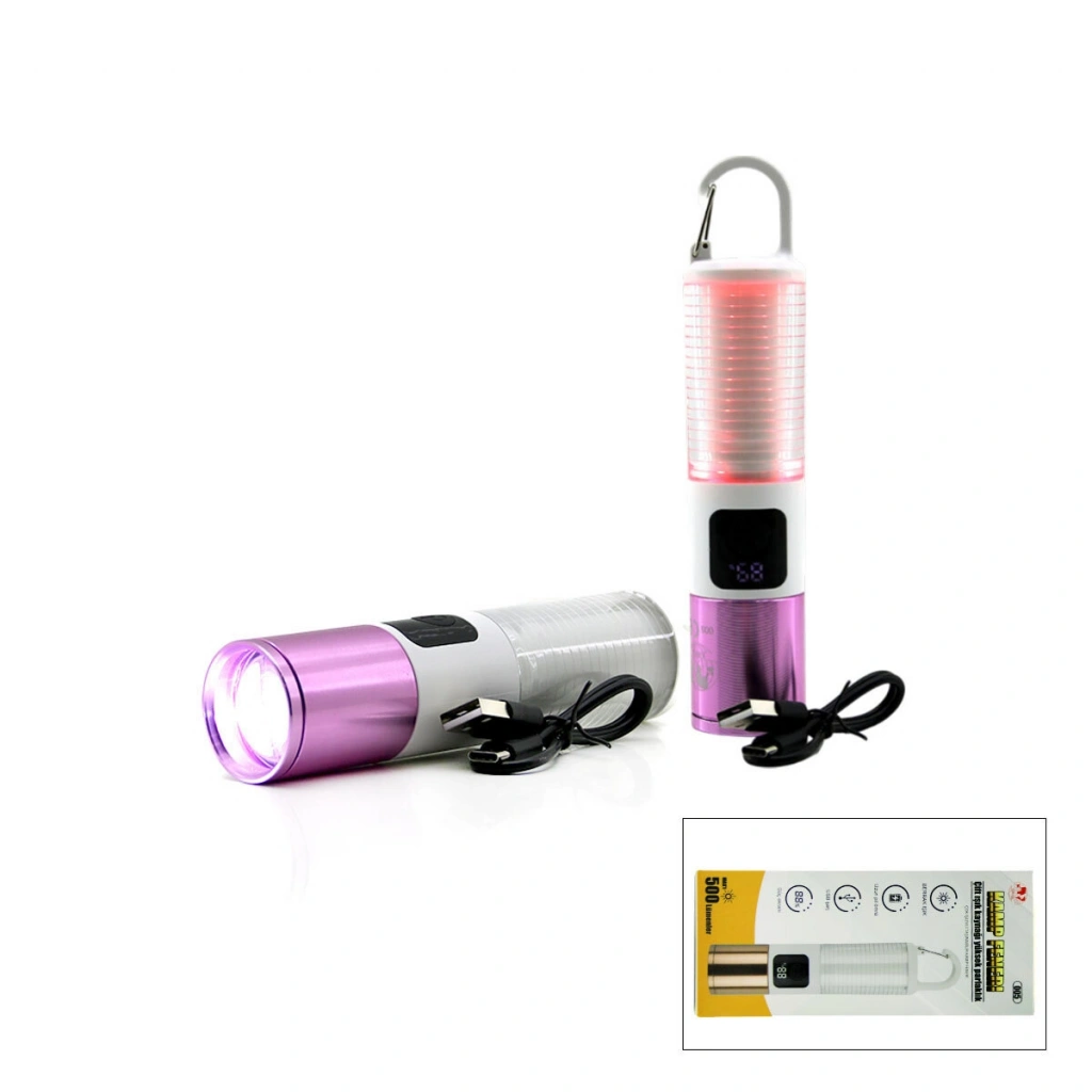 2İN1 KAMP - ÇOK AMAÇLI EL FENERİ USB ŞARJLI ZOOM 6 FONKSİYON IŞIK=DOĞAL - RENKLİ ASKI MANDALI ŞARJ GÖSTERGESİ 005
