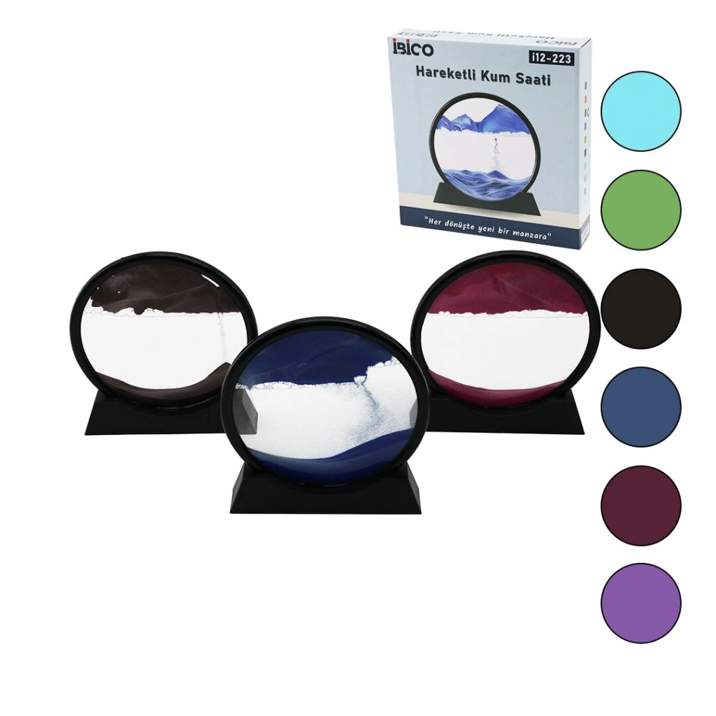 7 İNÇ - 17.5CM RENKLİ SULU CAM KUM SAATİ HAREKETLİ AYNA MODELİ