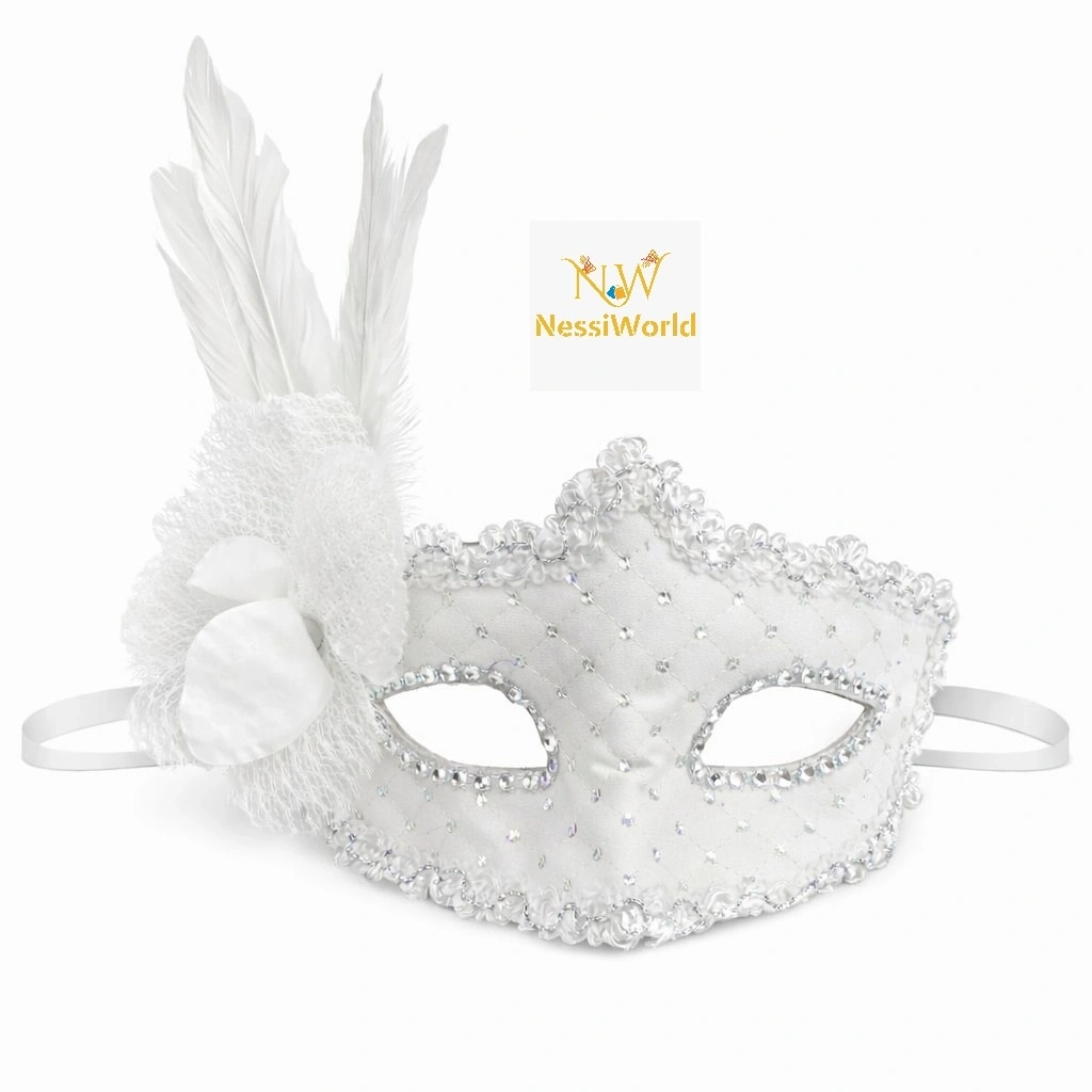 Timion Beyaz Tüylü Venedik Lüks Balo Maskesi