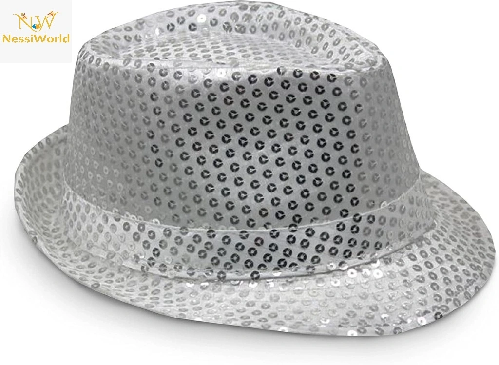 Timion Disko Star Gümüş Payetli Fötr Şapka Yetişkin Boy