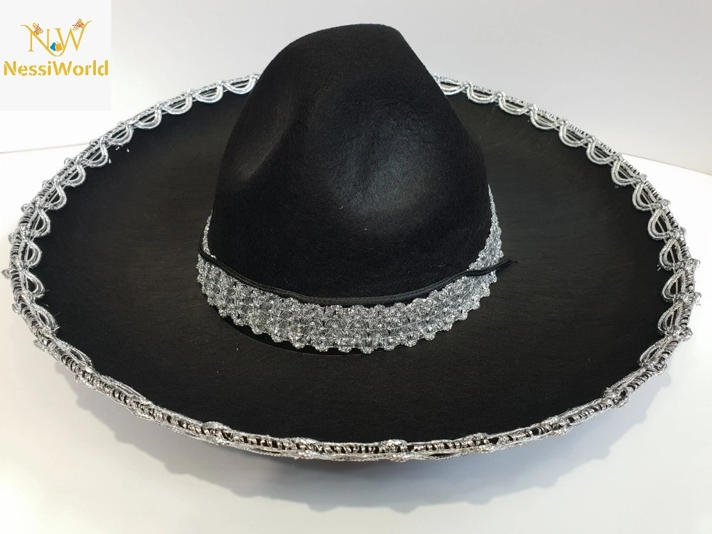 Timion Gümüş Renk Şeritli Meksika Mariachi Latin Şapkası 55 cm Çocuk