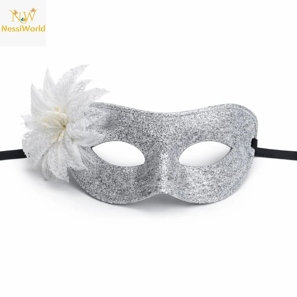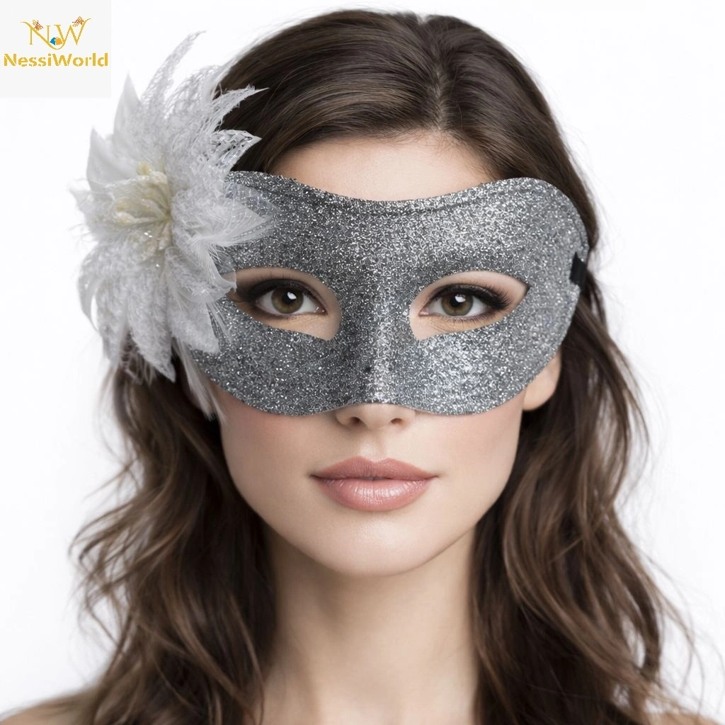Timion Gümüş Simli Tüylü Balo Maskesi – Kadın Parti & Maskeli Balo Maskesi
