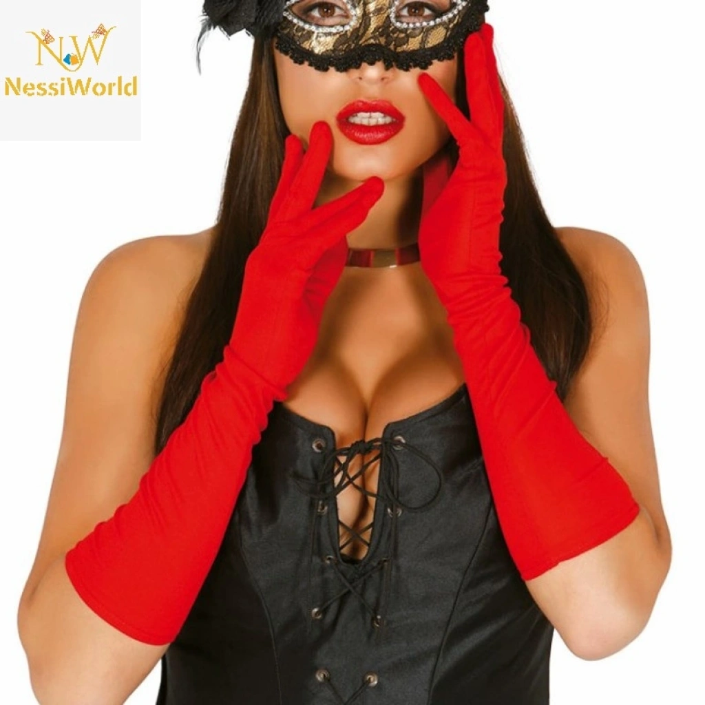 Timion Kırmızı Renk Dirseğe Kadar Uzun Kumaş Eldiven 40 cm