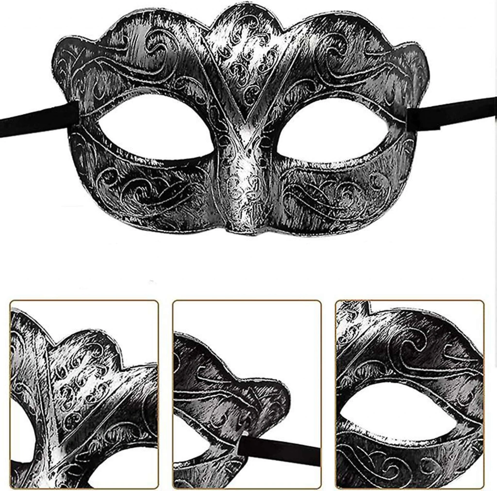 Antik gri gümüş renginin ve eskitilmiş görünümünün verdiği özgünlük ile Venedik maskeleri dünyasına adım atın. Bu özel maske, maskeli baloların ve temalı partilerin vazgeçilmez aksesuarı olacak.