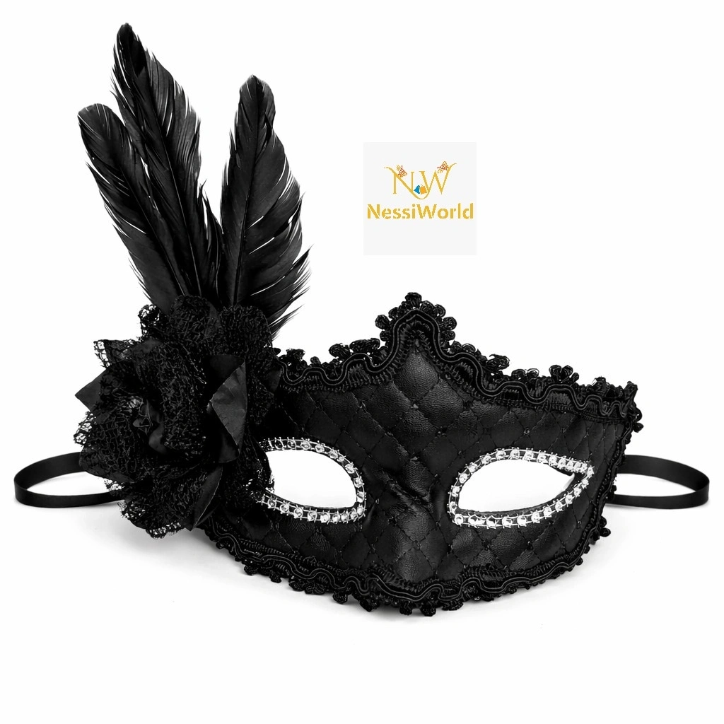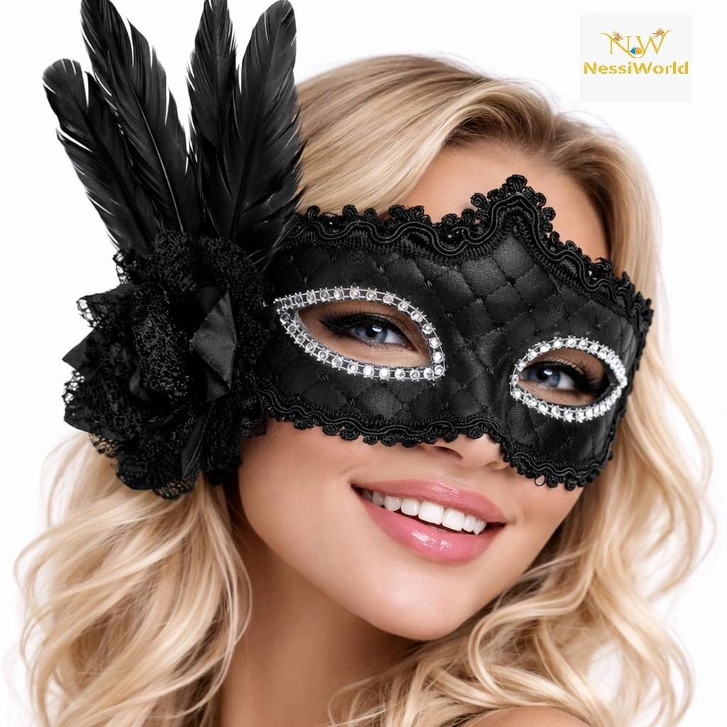 Timion Siyah Tüylü Venedik Lüks Balo Maskesi