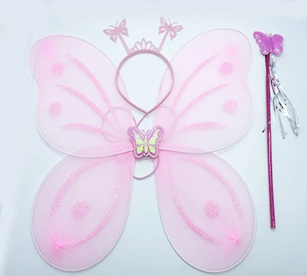 Toz Pembe Renk Kelebek Kanadı Tacı ve Sopası 50x37 cm (5148)