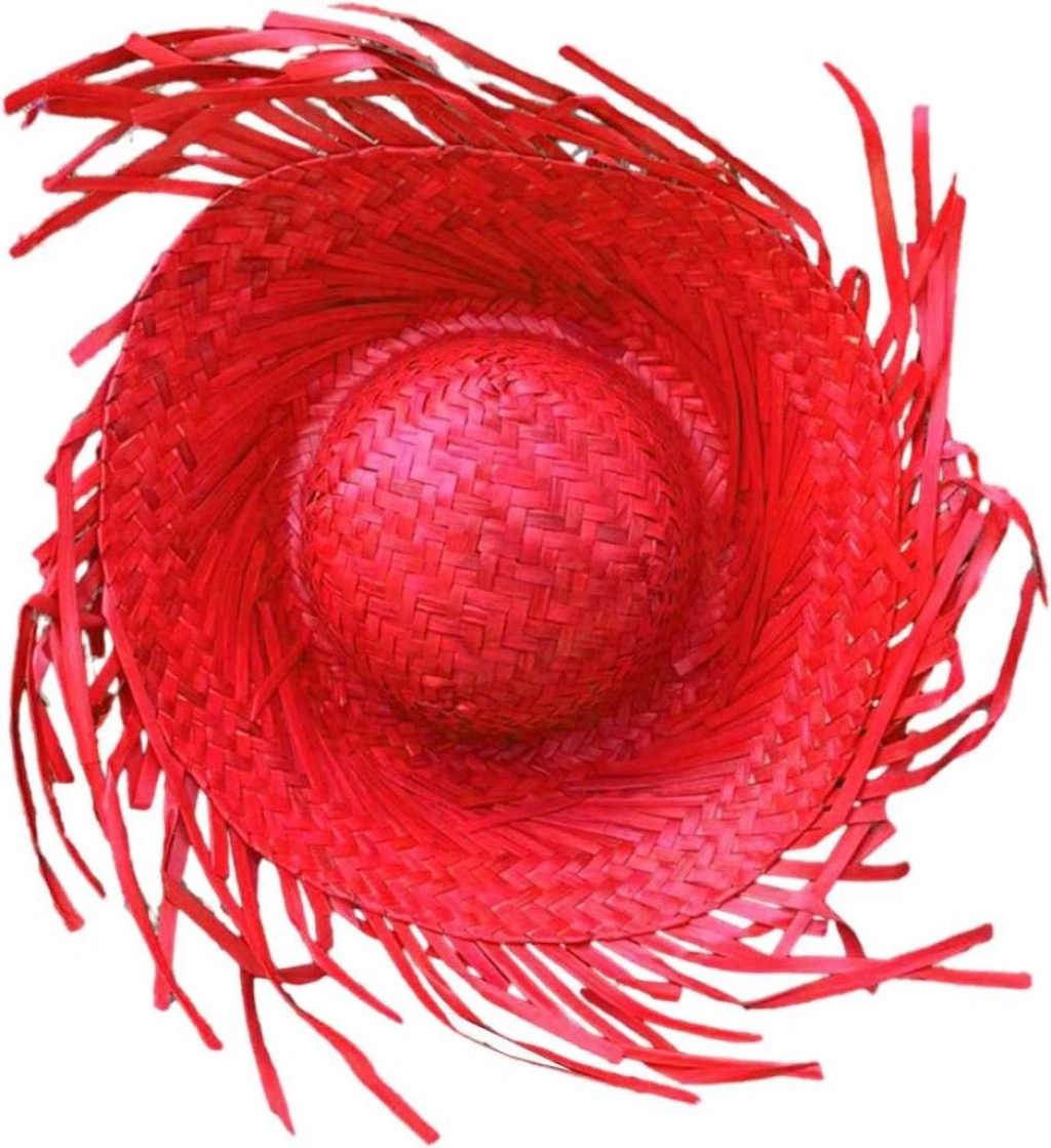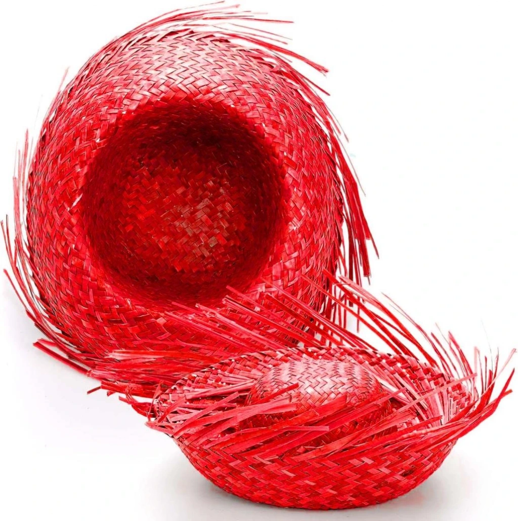 Timion Tropikal Parti Kırmızı Hasır Hawaii Şapkası 13x36 cm