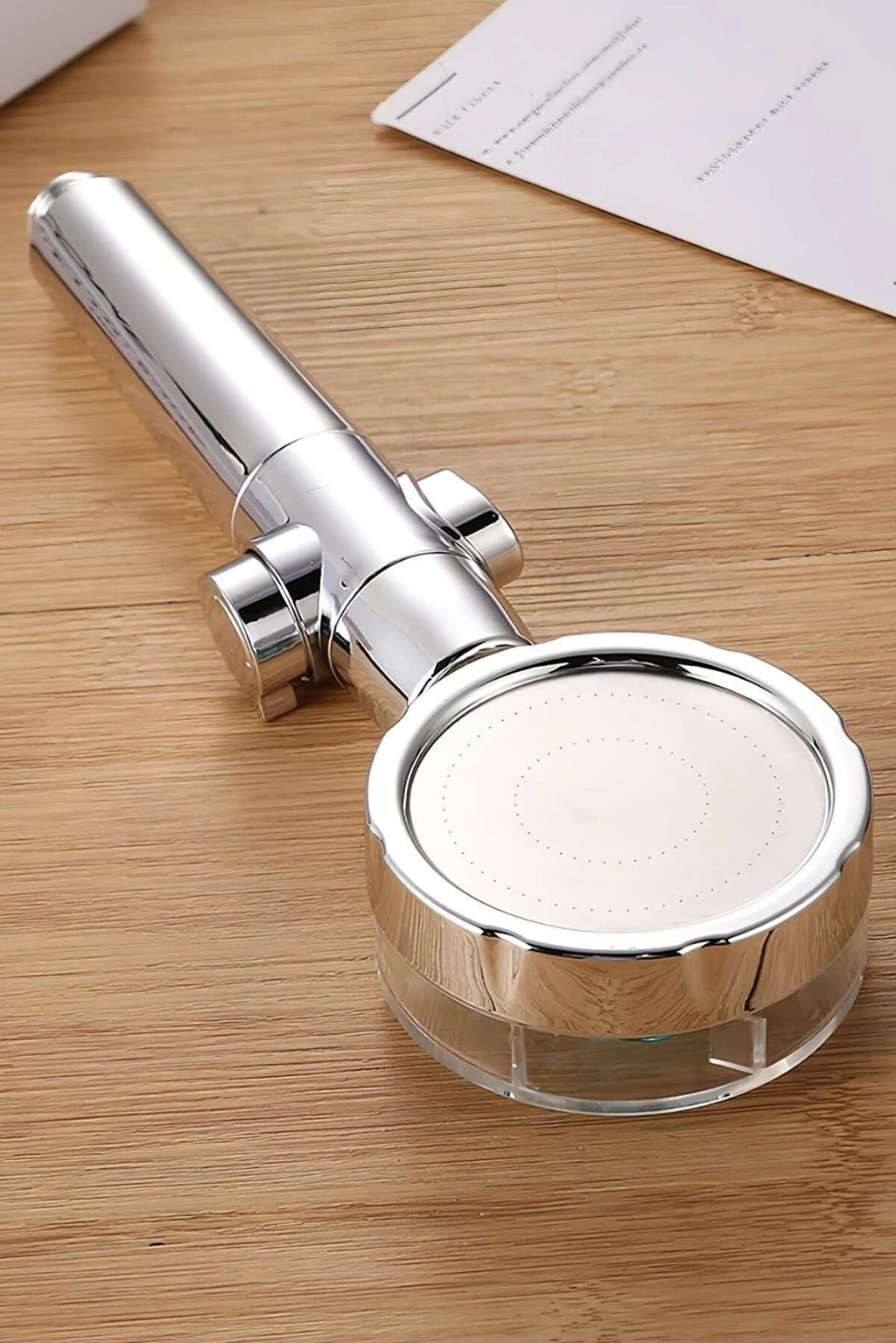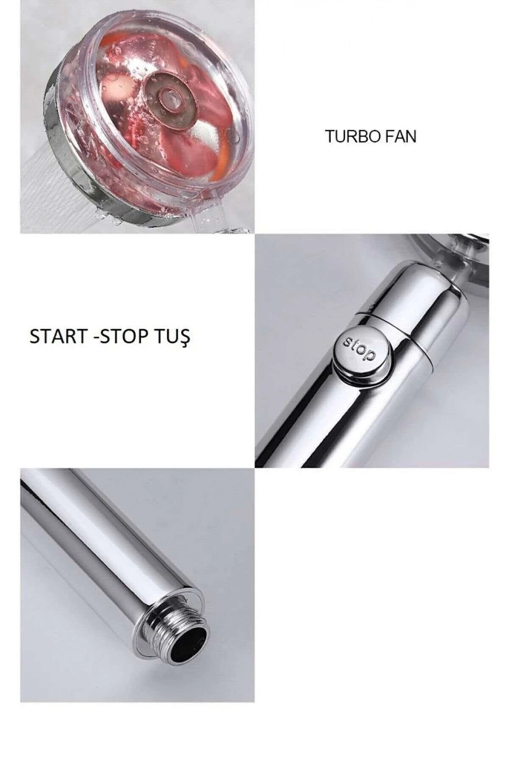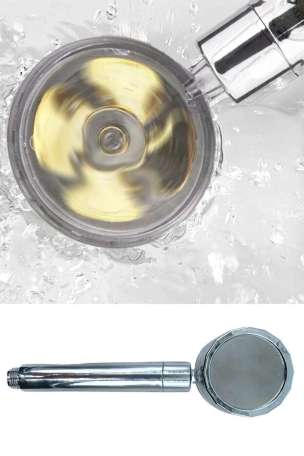 Turbo Duş Başlığı Su Tasarruflu Süzgeçli Fanlı 360 derece dönebilen Hareketli Pervaneli Tazyikli Tuşlu Duş Başlığı