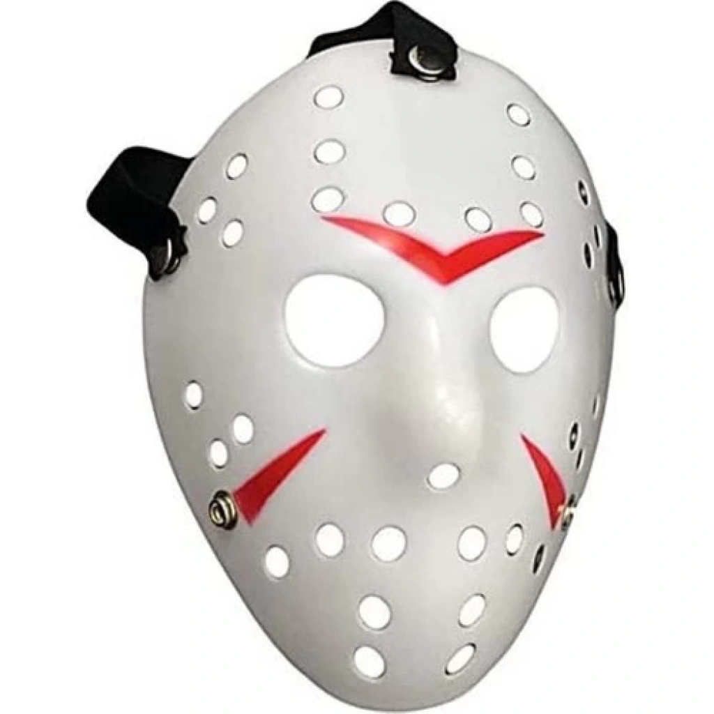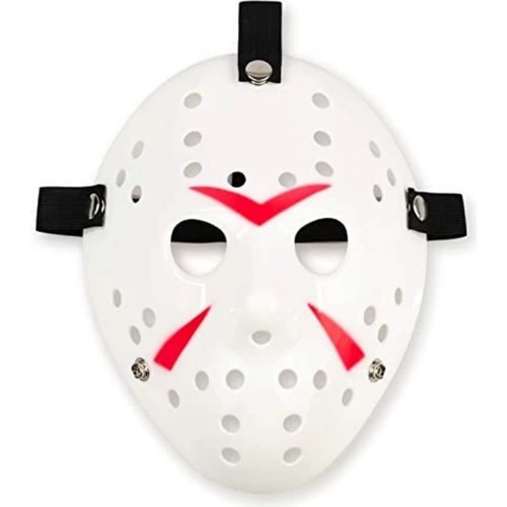 TYY Beyaz Renk Kırmızı Çizgili Tam Yüz Hokey Jason Maskesi Hannibal Maskesi