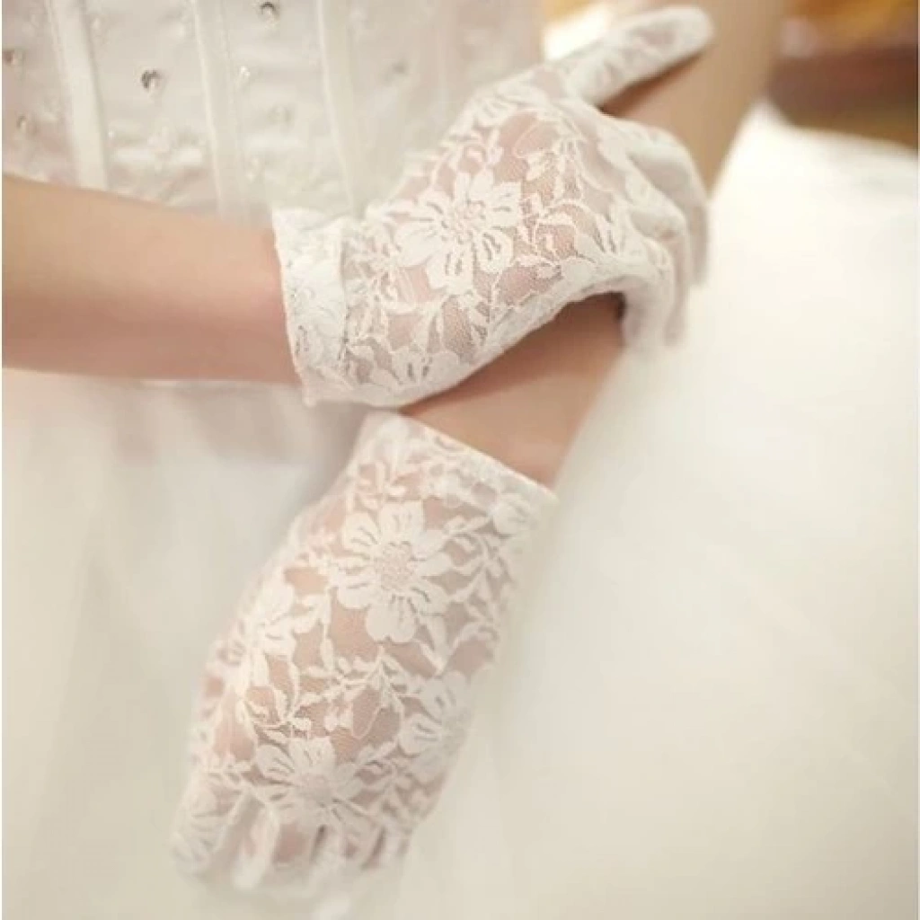 TYY Beyaz Renk Kısa Dantelli Eldiven