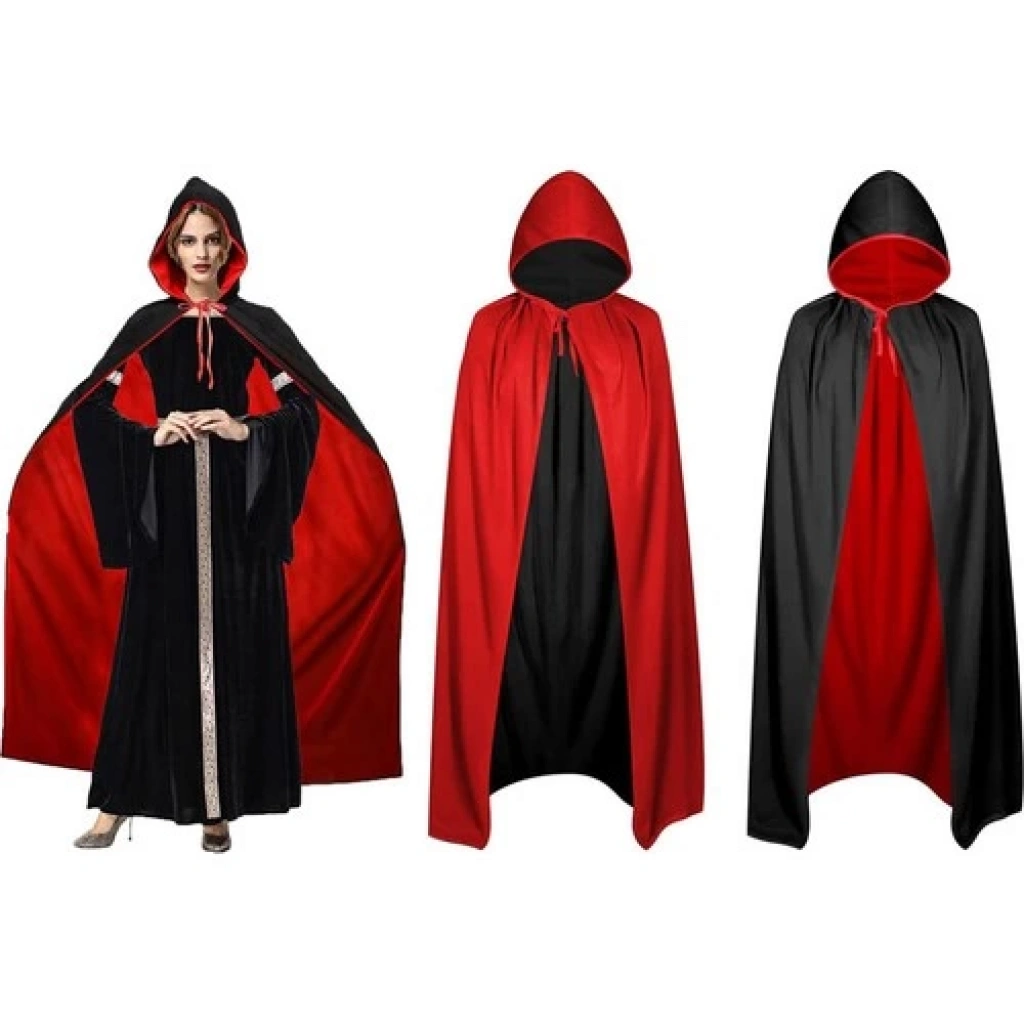 TYY Çift Taraflı Kullanılabilir Siyah Kırmızı Kapişonlu Pelerin 140 cm Yetişkin