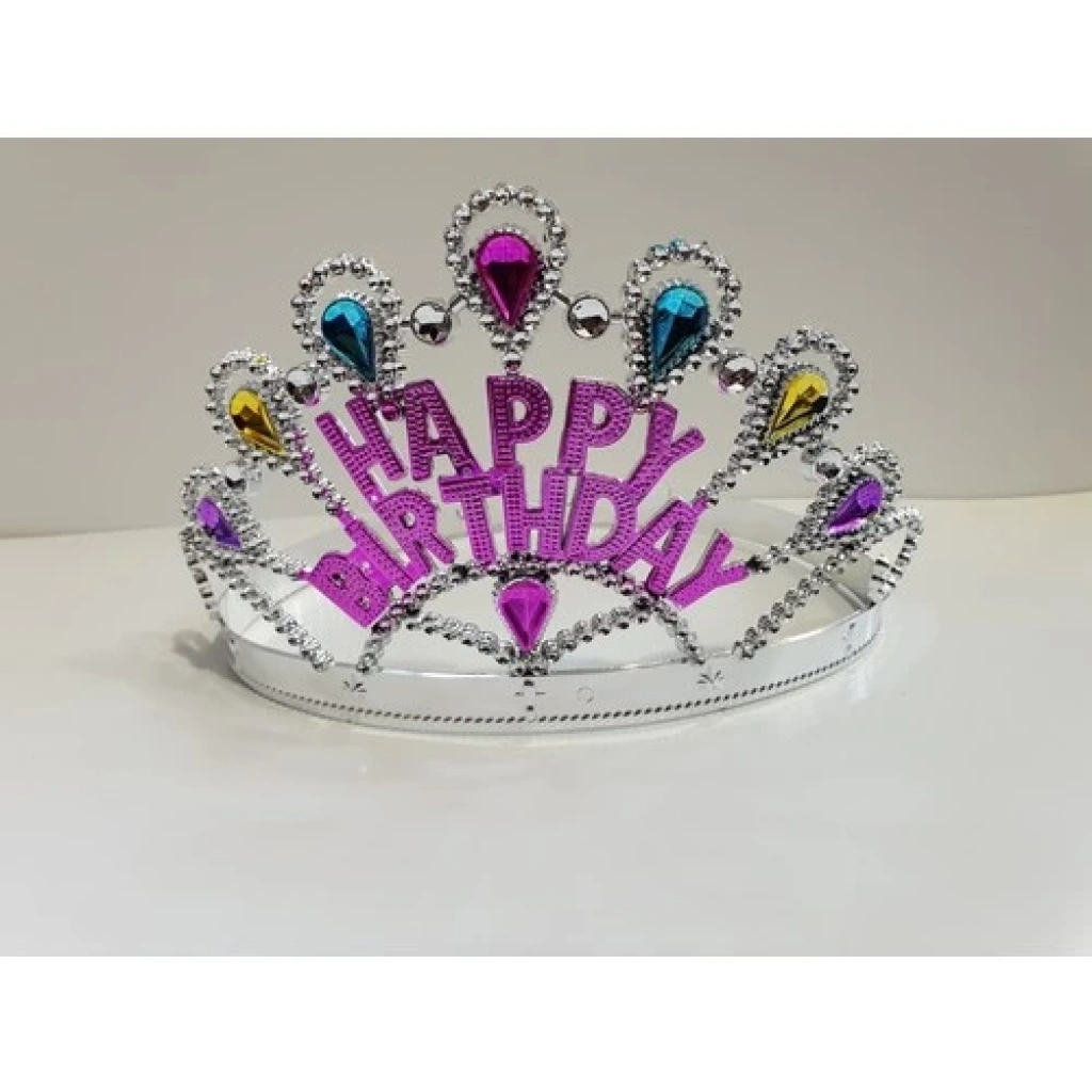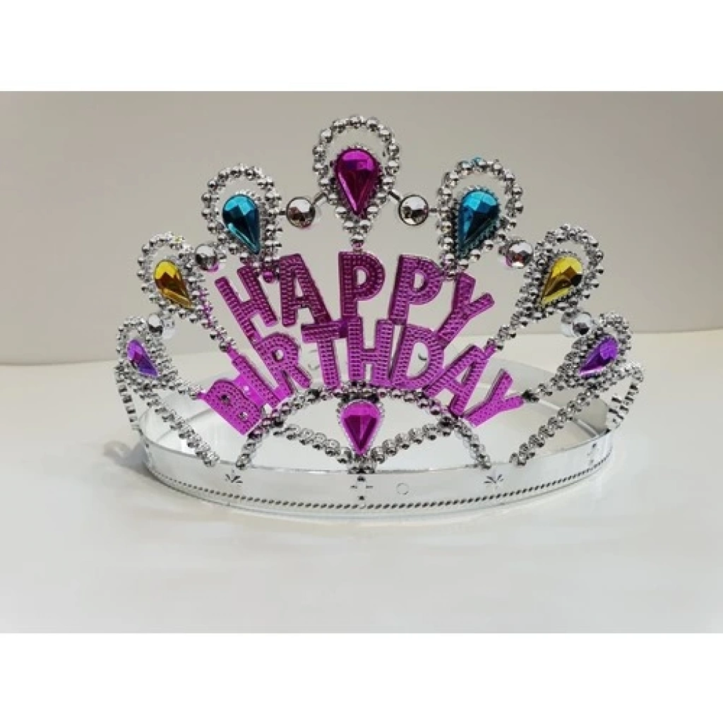 Mor Renk Kristal Taşlı Parlak Birthday Girl Yazılı Taç 16X17 cm