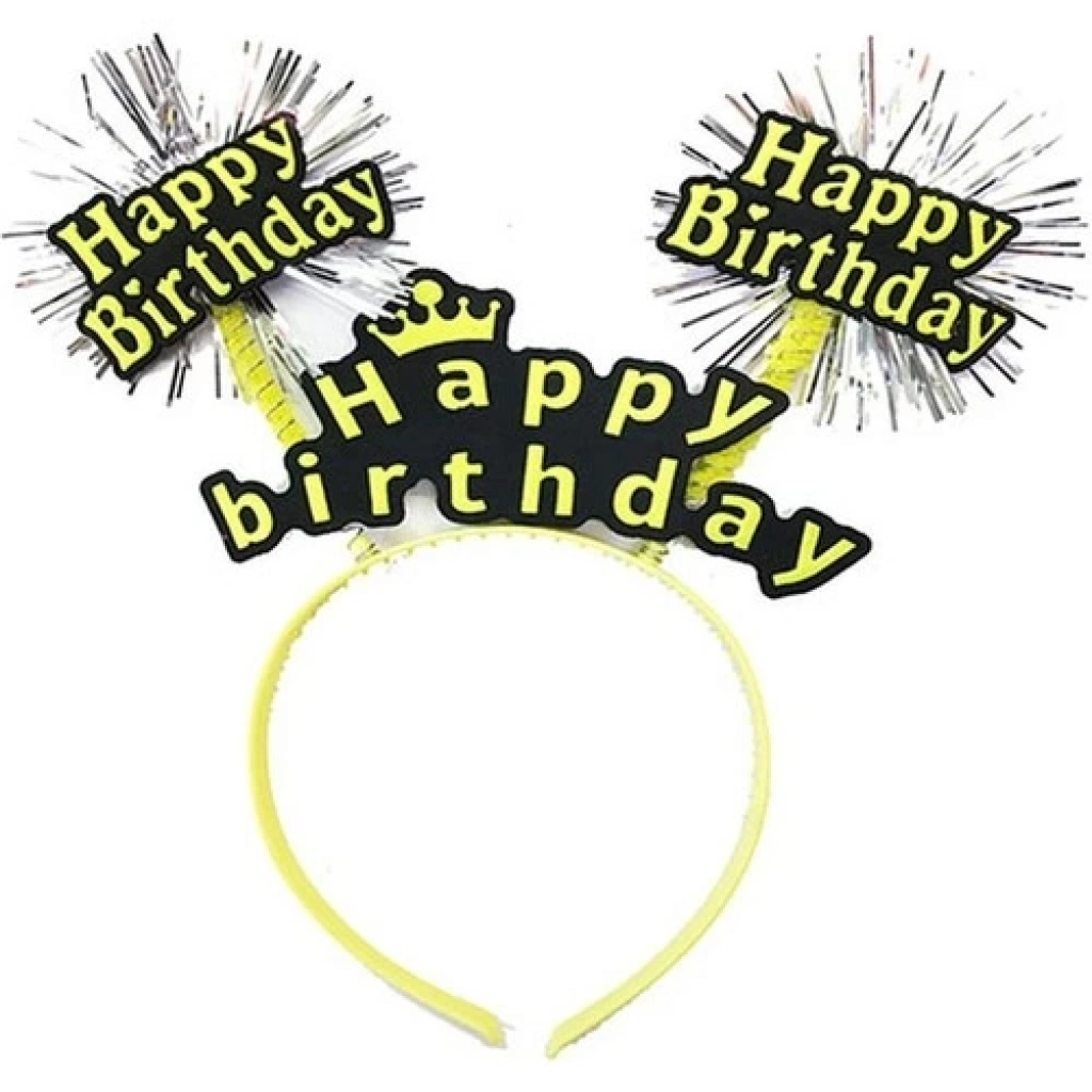 TYY Happy Birthday Püsküllü Neon Sarı Renk Doğum Günü Tacı 22X19 cm