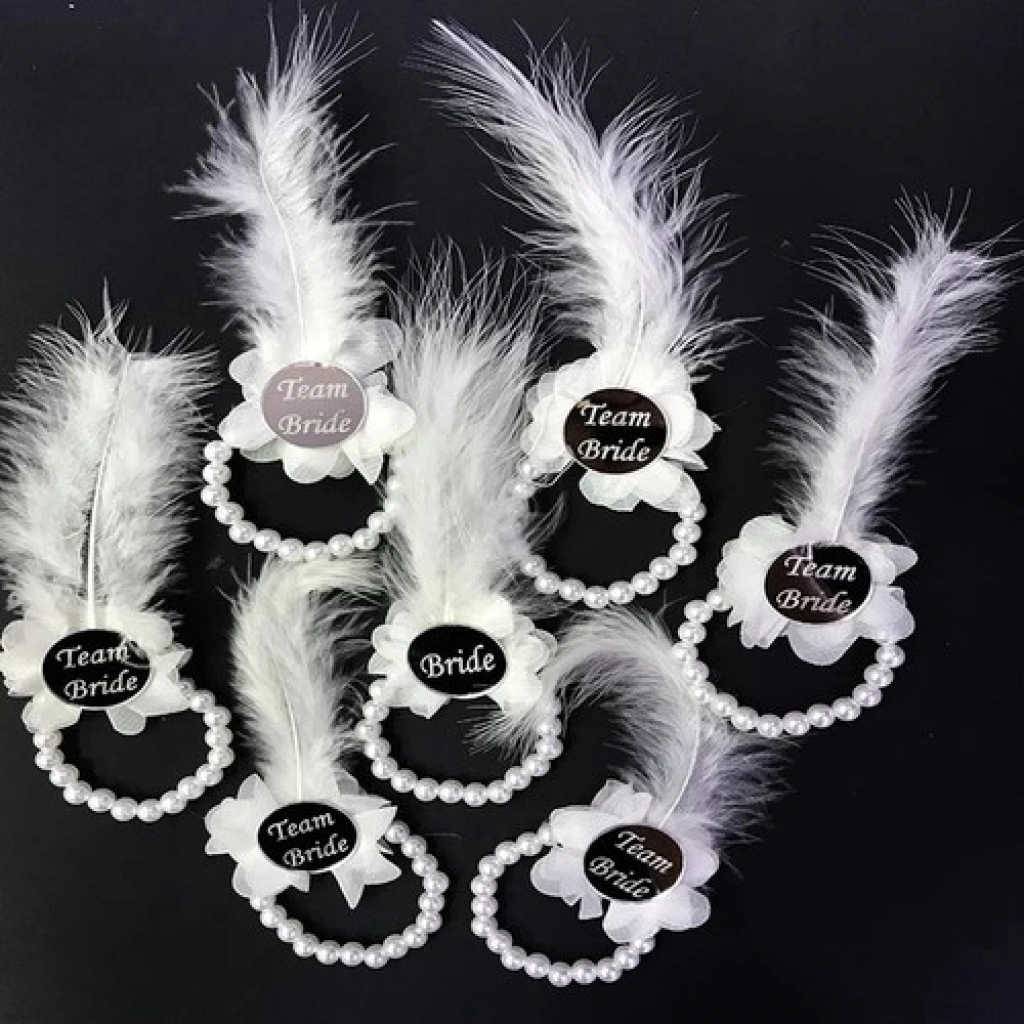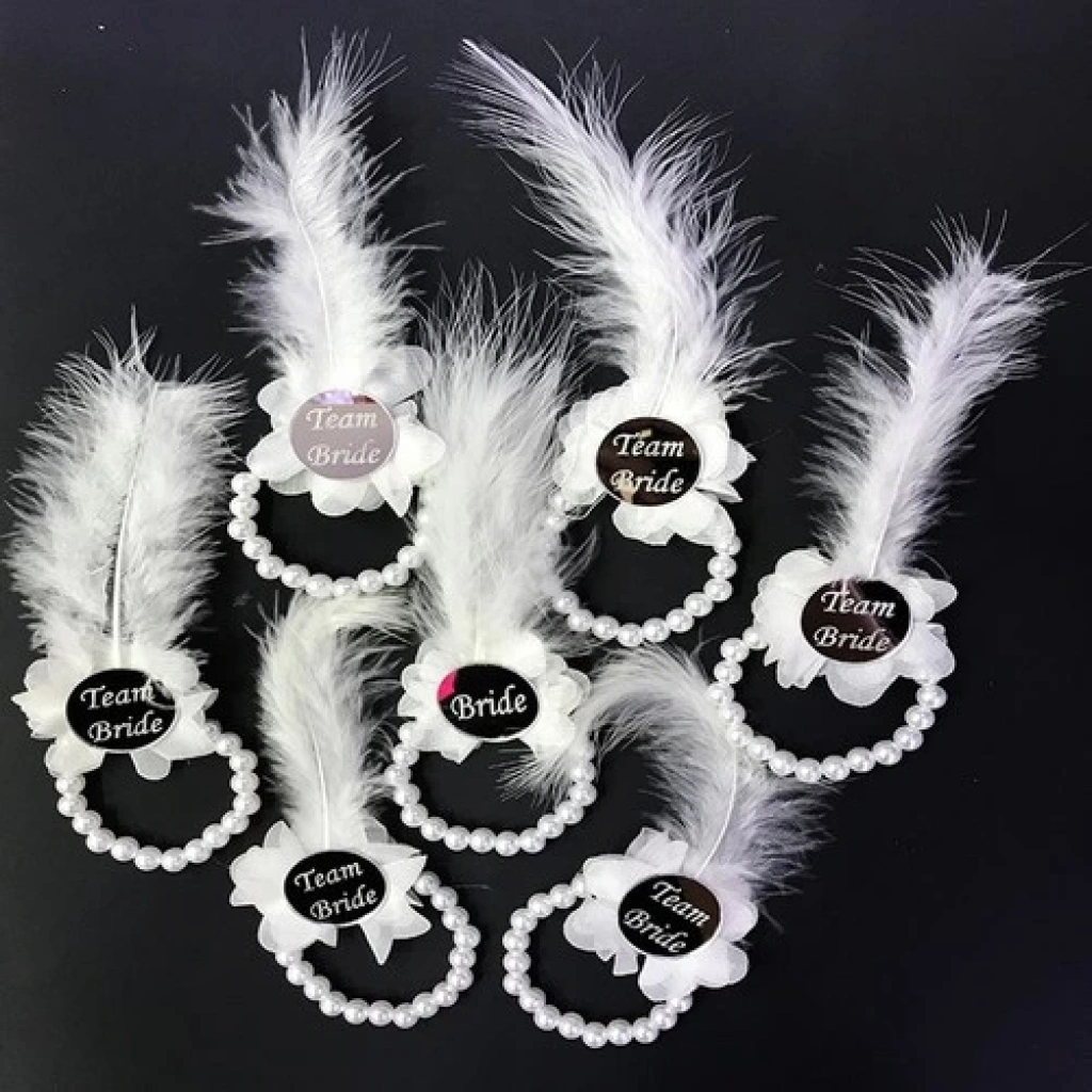 TYY Incili Nedime Bilekliği Gümüş Renk Pleksili Beyaz Otrişli 7 Adet