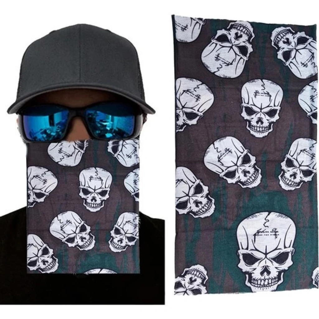 TYY Kahve Yeşil Renk Üzeri Likralı Çoklu Kafatası Baskılı Baf Buff Bandana 25X48 cm