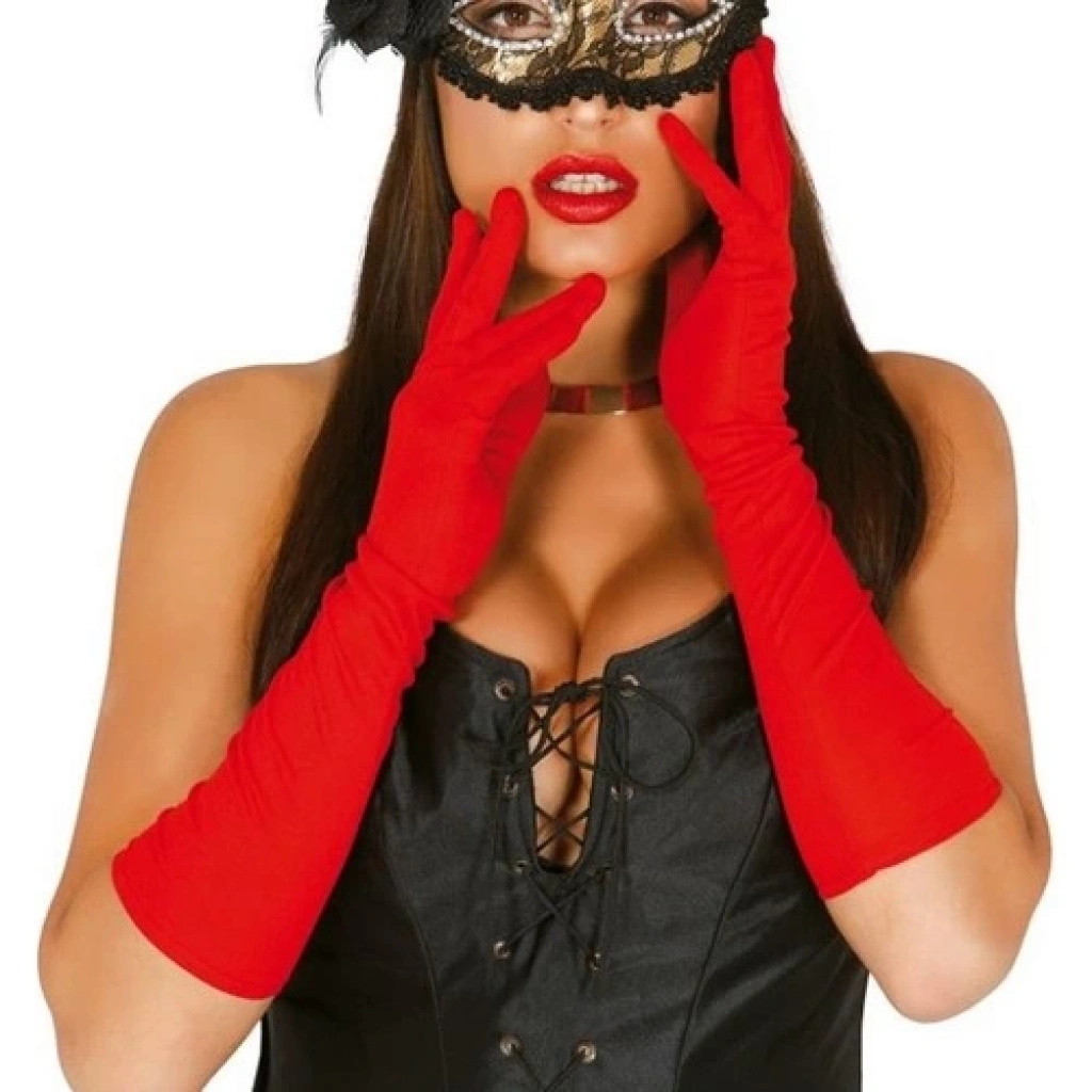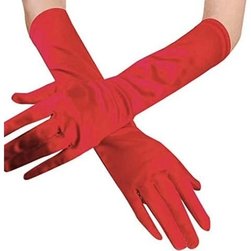 TYY Kırmızı Renk Dirseğe Kadar Uzun Kumaş Eldiven 40 cm