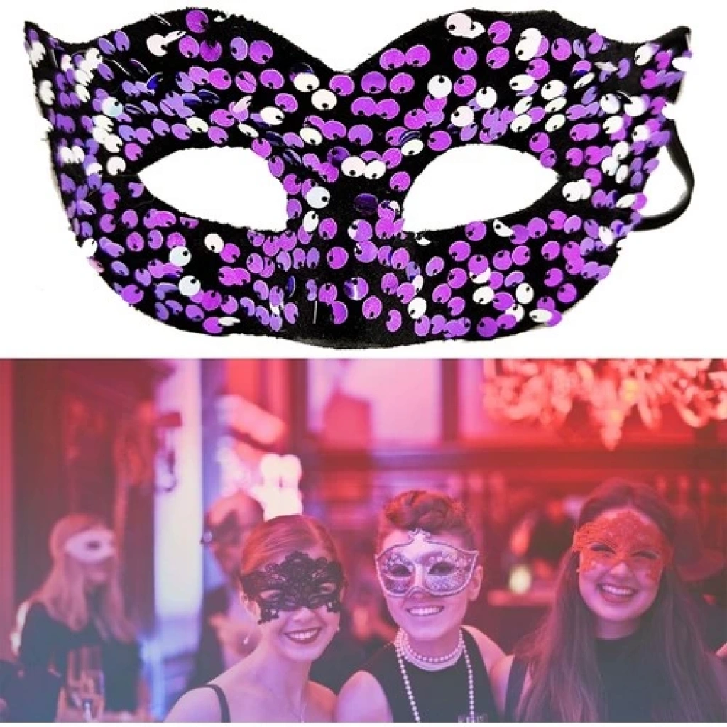 TYY Mor Renk Arkadan Lastikli Pul Payet İşlemeli Balo After Parti Maskesi