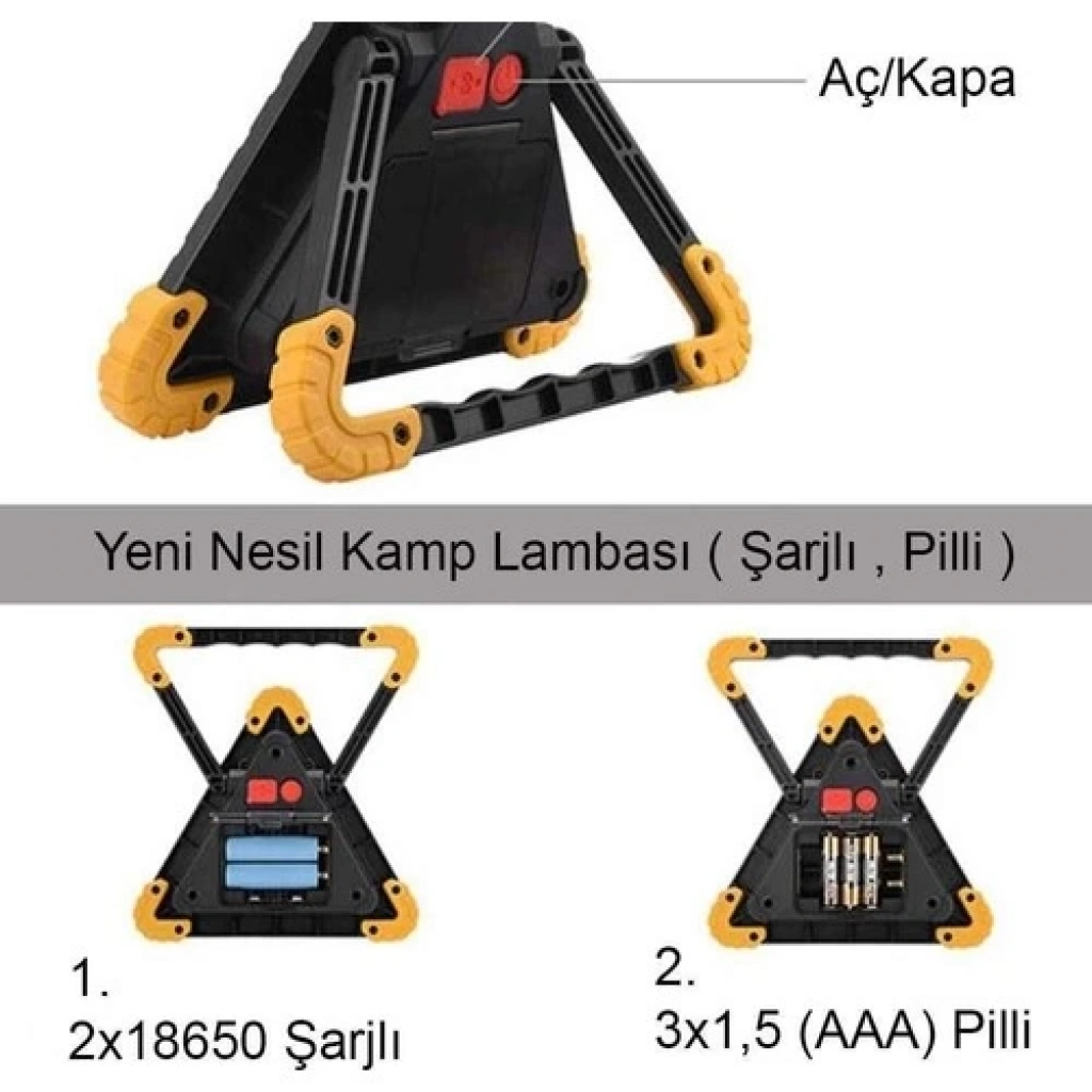 Projektör 15w Led Şarjlı El Feneri Ve X2 Tüp 26smd Led Çift Yönlü