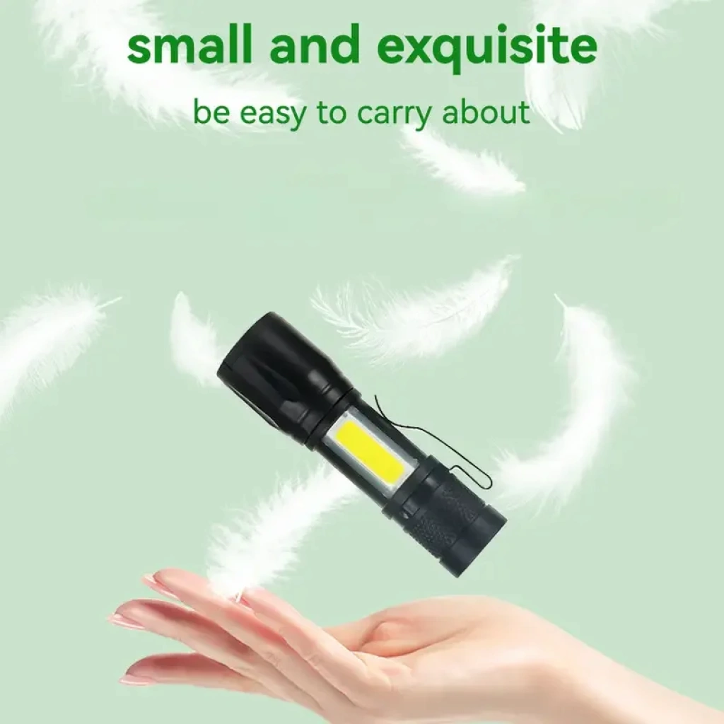Ultra Parlak Şarj Edilebilir LED El Feneri, COB Yan Işık, Yakınlaştırma ve Uzaktan Görüş Özelliği, Taktik Kullanım İçin Klipsli Tasarım, USB Şarj, Taşınabilir Tasarım, 30 Metre Menzil, 400 Lümen, ABS Malzeme, USB Kablosu Dahil