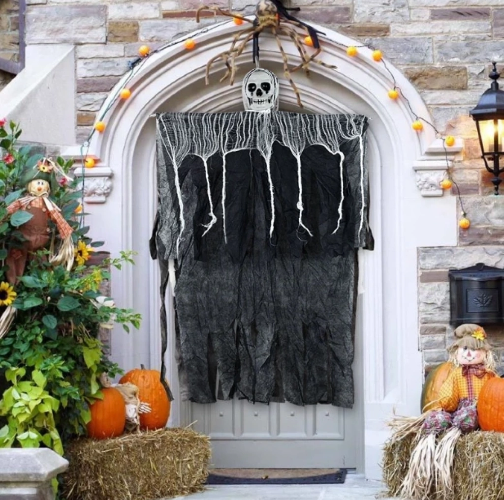 Ürpertici Kuru Kafa Korku Hayalet Saçaklı Dekor 90x50 cm (5148)