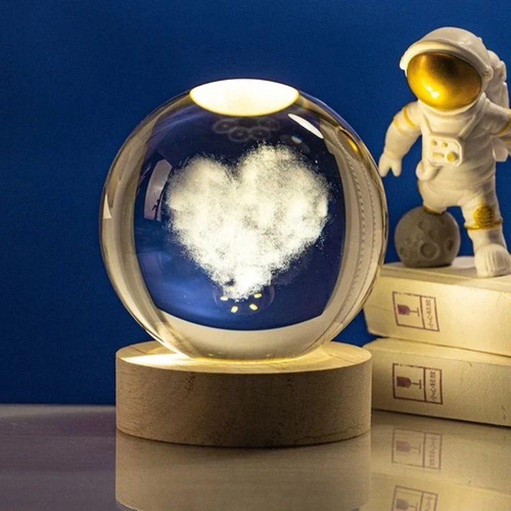 USB Li Ahşap Altlıklı Kalp Tasarımlı Cam Küre