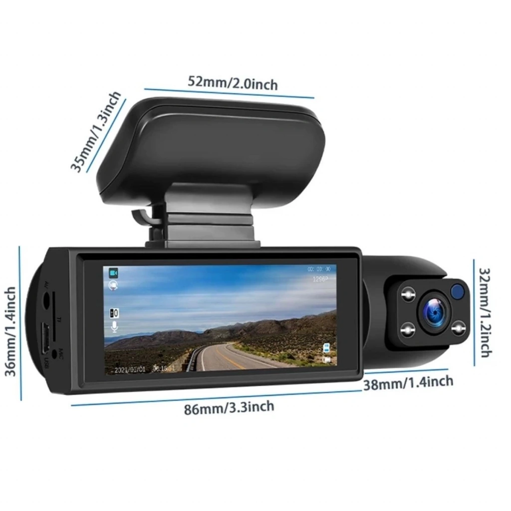 Çift Kamera Teknolojisi: Hem aracın önünü hem de iç kısmını aynı anda kayıt eder.