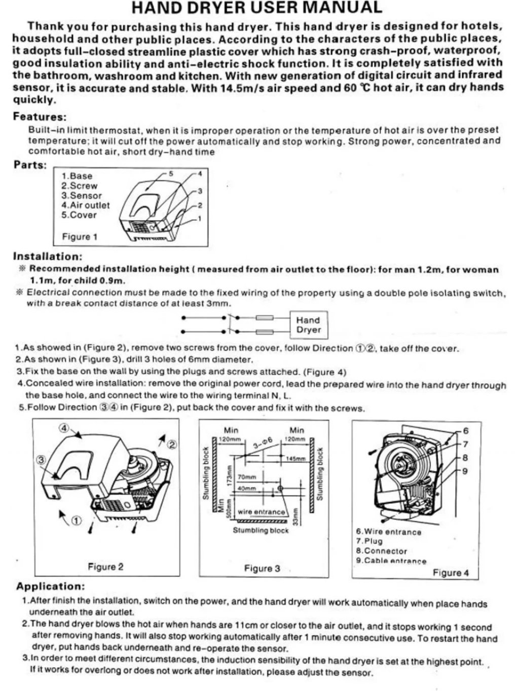 - Hızlı kurutma: Güçlü hava akışı sayesinde kısa sürede elleri kurutur.