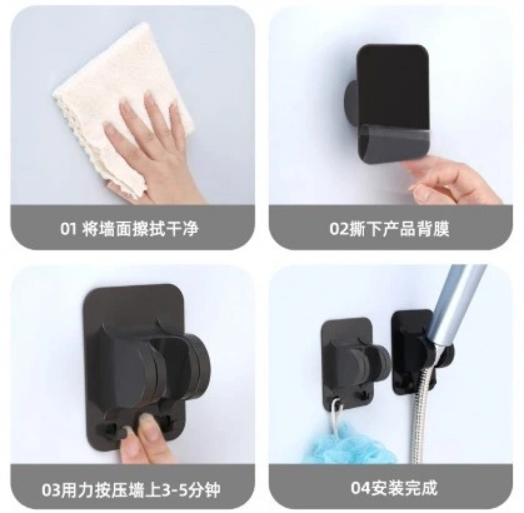 Yapışkanlı Duş Başlığı Tutucu Ayarlı Askılı Siyah